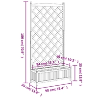 This wooden planter with trellis is an excellent choice for climbing plants in your garden, patio and terrace. Solid fir wood: Solid fir wood is a beautiful and durable material that maintains its integrity even when exposed to moisture. It does not dry out or warp, making it a reliable choice.Sufficient space: This garden planter is wide and deep enough, providing ample room for growing a variety of plants, flowers, and vegetables. Additionally, the hollow bottom allows for good ventilation and drainage.Trellis fence panel: The patio planter comes with a beautiful trellis fence panel that is perfect for supporting climbing and hanging plants like roses, ivy, or vines. It also adds a stunning visual feature to your outdoor space.Wide applications: This outdoor planter is designed with round top bars, giving it a stylish and elegant appearance that complements any outdoor space. It can be placed in a patio corner or leaned against a wall or fence. Good to know:The delivery includes the planter only; the liner is not included.