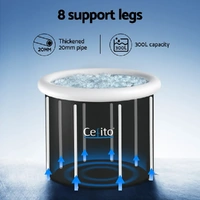 The Ice Bathtub is the perfect solution for your post-workout recovery needs. With its large size and 300L capacity, this tub provides ample space for a refreshing and rejuvenating ice bath experience. Designed with three layers of insulation, our Ice Bathtub ensures that ice stays cold for longer periods. The tub is supported by 6 sturdy legs, providing stability and durability. Equipped with a convenient drain tap and hose, you can easily empty the tub after use. The air nozzle allows for quick inflation, and the bottom drain hole ensures effortless drainage. For added convenience, our Ice Bathtub comes with a protective cover to keep it clean and protected when not in use. The bonus repair kit ensures that you can easily fix any minor damage that may occur. Versatile and suitable for both indoor and outdoor use, the Ice Bathtub is a must-have for athletes, fitness enthusiasts, and anyone looking to recover and relax in the comfort of their own home.
