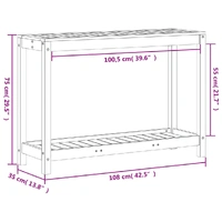 This wooden potting table is perfect for organising and displaying your potted plants at home, in a garden, on a patio, or on a terrace. Solid pine wood: The potting bench table is made of solid pine wood for sturdiness and stability. Solid pine wood is a beautiful natural material. Pine wood has a straight grain, and the knots give the material its signature, rustic look.Ample storage space: The potting workbench with 1 open shelf provides sufficient space for related goods such as small gardening tools, soil, fertilisers, etc.Ventilated: This outdoor potting bench with a slat design allows water flow, making it not easy to rot and ensuring a long service life.Multiple applications: The potting station can not only bring a sense of nature to your space but can also be a perfect addition to your courtyard, garden, greenhouse, and more. Good to know:To make sure your outdoor furniture stays beautiful, we recommend protecting it with a waterproof cover.