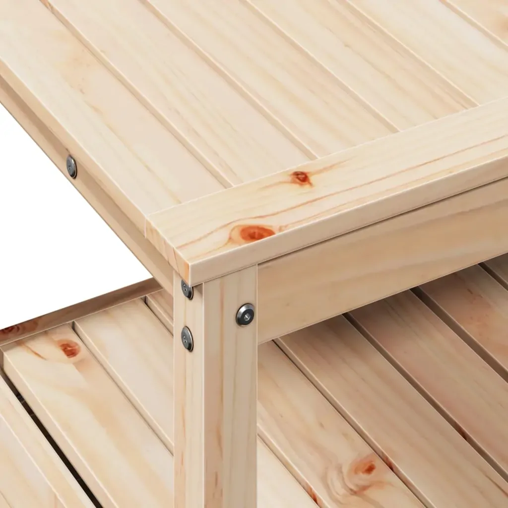 This wooden potting table is perfect for organising and displaying your potted plants at home, in a garden, on a patio, or on a terrace. Solid pine wood: The potting bench table is made of solid pine wood for sturdiness and stability. Solid pine wood is a beautiful natural material. Pine wood has a straight grain, and the knots give the material its signature, rustic look.Ample storage space: The potting workbench with storage cabinet provides sufficient space for related goods such as small gardening tools, soil, fertilisers, etc.Ventilated: This outdoor potting bench with a slat design allows water flow, making it not easy to rot and ensuring a long service life.Multiple applications: The potting station can not only bring a sense of nature to your space but can also be a perfect addition to your courtyard, garden, greenhouse, and more. Good to know:To make sure your outdoor furniture stays beautiful, we recommend protecting it with a waterproof cover.