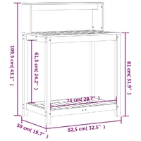 This wooden potting table is perfect for organising and displaying your potted plants at home, in a garden, on a patio, or on a terrace. Solid pine wood: The potting bench table is made of solid pine wood for sturdiness and stability. Solid pine wood is a beautiful natural material. Pine wood has a straight grain, and the knots give the material its signature, rustic look.Ample storage space: The potting workbench with open shelves provides sufficient space for related goods such as small gardening tools, soil, fertilisers, etc.Ventilated: This outdoor potting bench with a slat design allows water flow, making it not easy to rot and ensuring a long service life.Multiple applications: The potting station can not only bring a sense of nature to your space but can also be a perfect addition to your courtyard, garden, greenhouse, and more. Good to know:To make sure your outdoor furniture stays beautiful, we recommend protecting it with a waterproof cover.