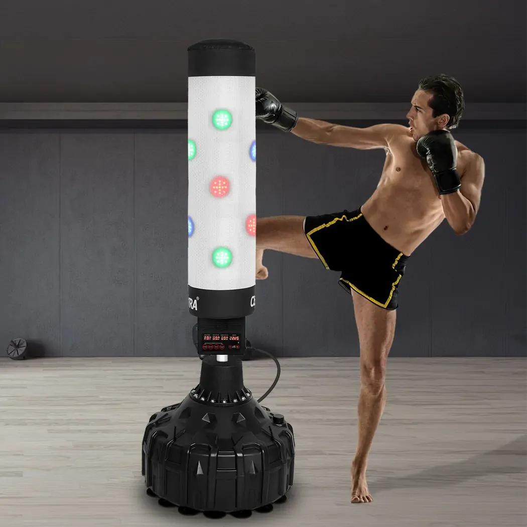 Versatile in its applications, this training system is suitable for use in boxing gyms, fitness centers, offices, living rooms, and beyond. The intelligent control screen integrated with Bluetooth speakers offers convenience and entertainment while you work out.