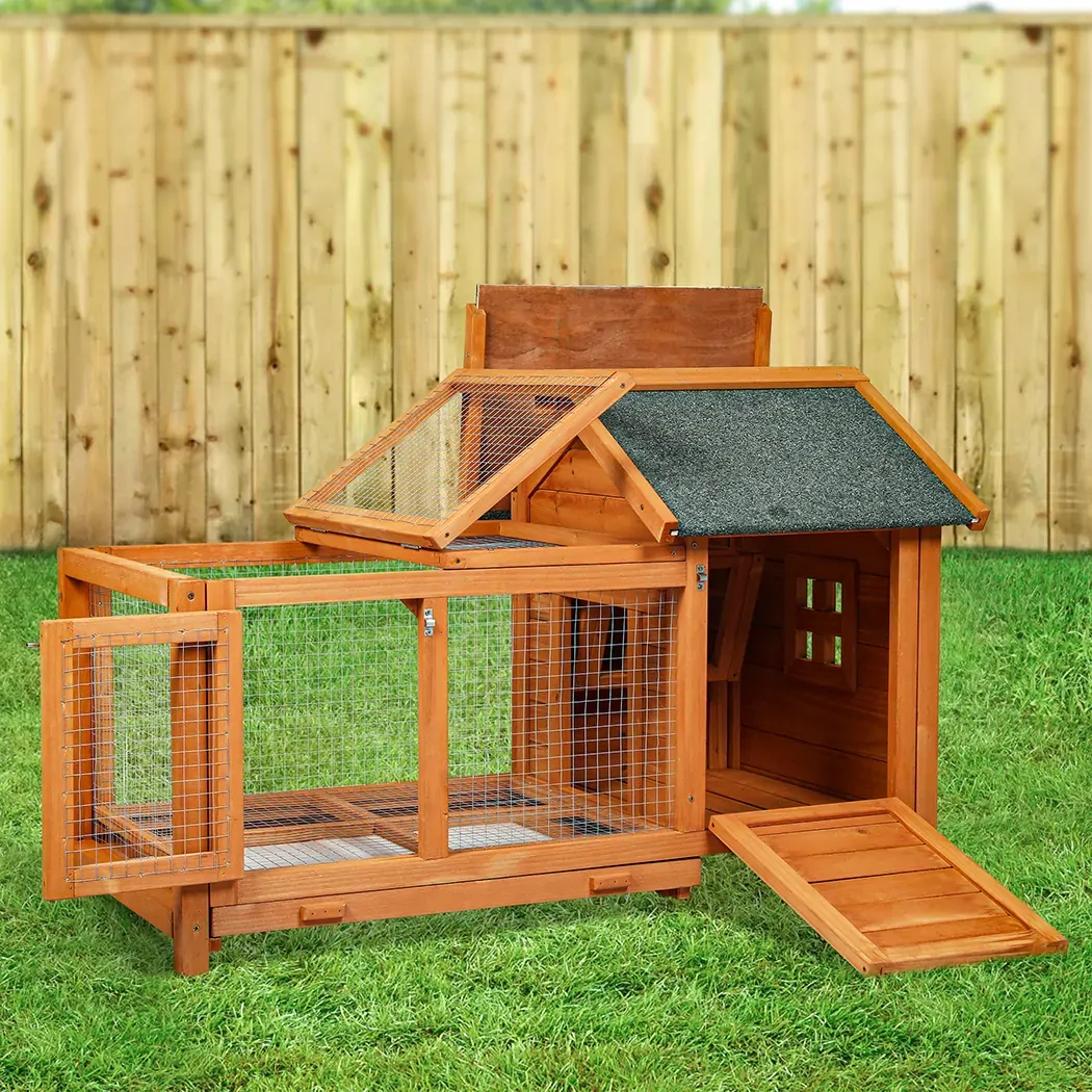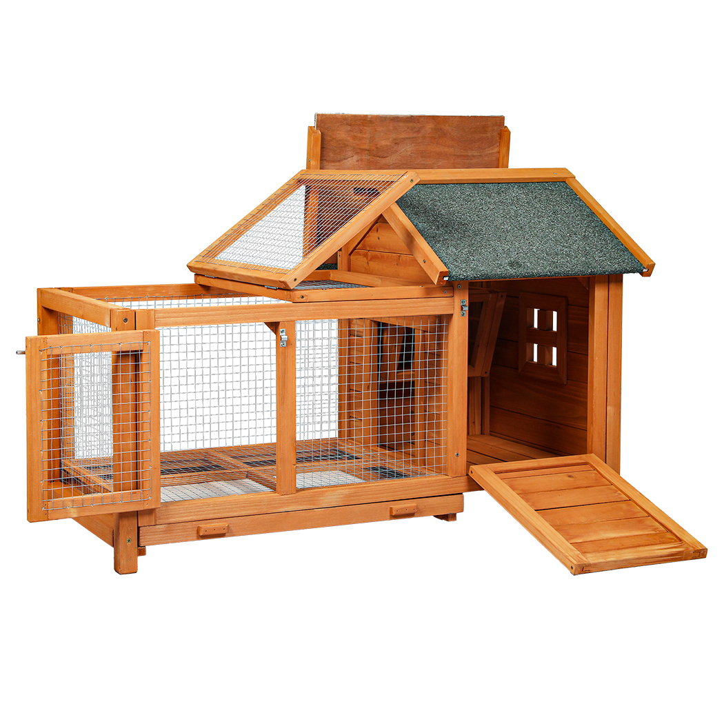 With easy-to-clean removable trays and reinforced galvanized mesh for rust-proof predator protection, this hutch ensures your pets stay safe. The eco-friendly, non-toxic paint provides a healthy environment.
