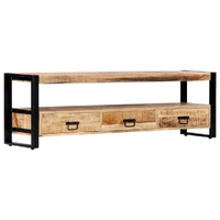 This wooden TV cabinet exudes a rustic charm. It will make a truly practical as well as captivating addition to your interior. The HiFi cabinet is made of solid mango wood, a hardwood with dense grains. Rough mango wood not only boasts the strength to bear the weight, but also stands the wear and tear of time. As a consequence, this beautifully-designed lowboard is exceedingly stable, durable and attention-grabbing. This stereo cabinet is fully handmade and the aesthetically-appealing wood grains make every piece of furniture distinctive and slightly different from each other. Additionally, the powder-coated steel frame adds to its sturdiness. This cabinet features 3 drawers and 1 compartment, providing ample space for storing your multimedia appliances, books, shoes, as well as various other items. Important note: The colours vary from piece to piece, making each piece unique. The delivery is random, ensuring the exclusivity and individuality of your product.
