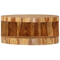 This round coffee table exudes an attractive charm. It will truly be a centrepiece of your interior. The coffee table is made of solid acacia wood, which is also known as rosewood or palisander, is a tropical hardwood that is famous for its natural grains and smooth texture. Additionally, it doesn't warp or split, and features natural decay resistance. Therefore this wooden coffee table is exceedingly stable, durable and captivating. The table with a big bottom storage shelf which provides ample space for keeping your items neatly organised. Besides, this side table is fully handmade and the exquisite craftsmanship as well as the refined wood grains make every piece of furniture distinctive and slightly different from each other. The coffee table is easy to assemble. Important note: The wood grains vary from piece to piece, making each piece unique. The delivery is random, ensuring the exclusivity and individuality of your product.