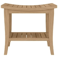 This wooden bathroom side table is a perfect choice for holding towels and bath accessories in the shower. Solid teak wood: Solid teak wood is a beautiful natural material. It has been seasoned, kiln dried and then treated with a rustic finish. Teak wood is known for its exceptional strength and weather resistance.Storage shelf: The teak side table holds up to 10 kg, ideal for storing your bath essentials such as bath towels, soap, shampoos, lotions, body wash, or scented candles, all these shower necessities are within easy reach. It is not suitable for sitting at all.Easy-to-clean surface: The smooth surface makes the bathroom accent table easy to clean with a damp cloth.