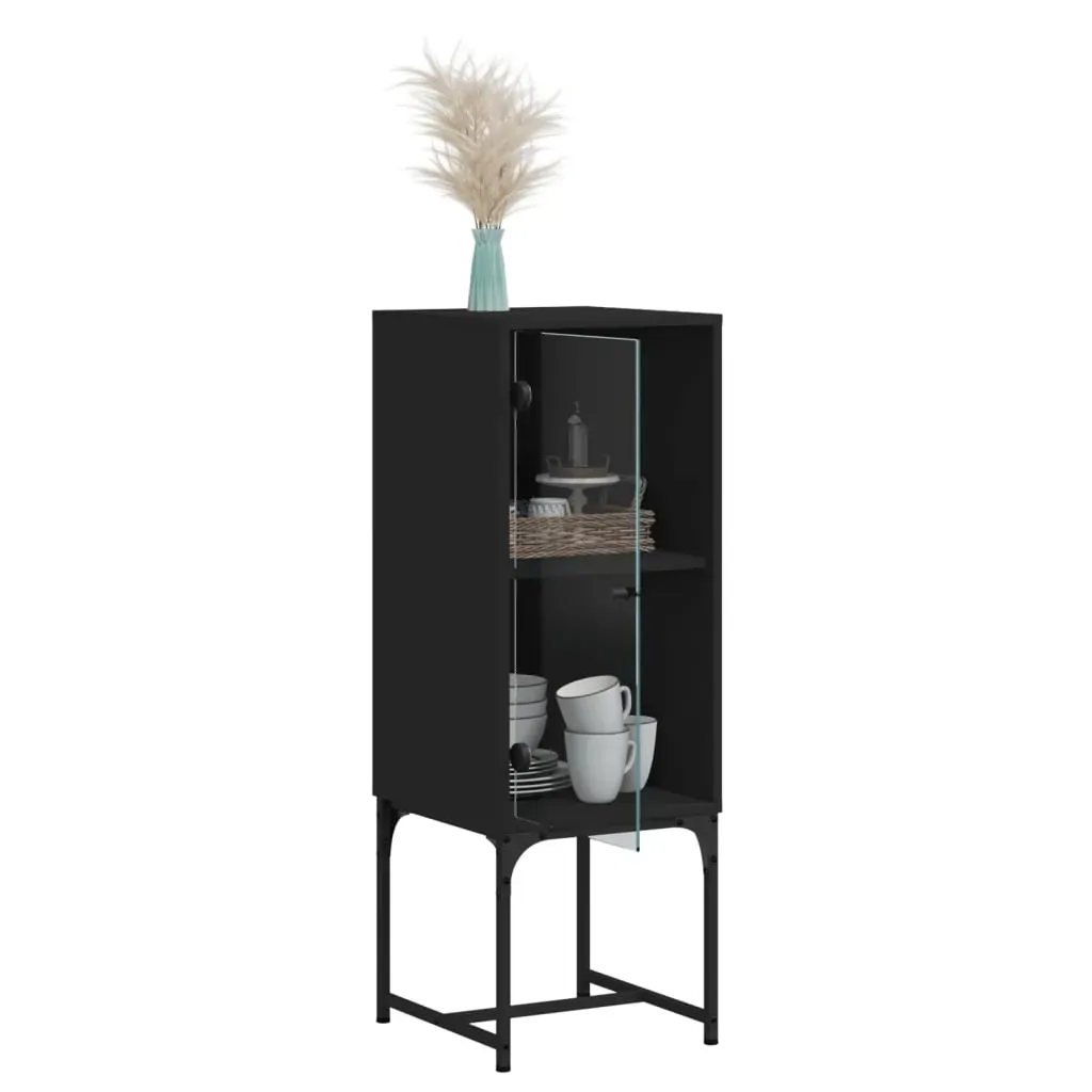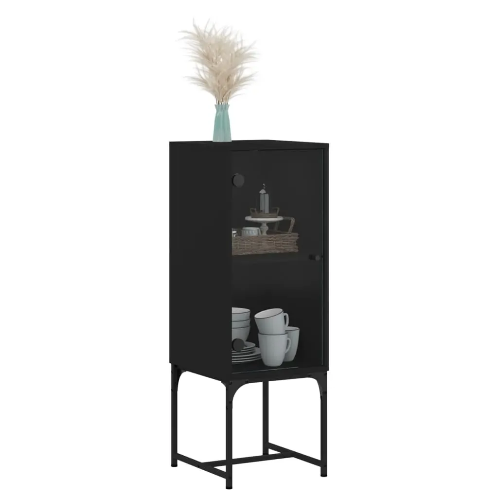 This side cabinet, featuring a timeless look, is meant to be an excellent addition to your home. Durable material: The engineered wood is of exceptional quality with smooth surface and also features strength, stability and resistance to moisture.Ample storage space: The cupboard offers ample storage space for keeping your various daily essentials well-organised and within easy reach.Displaying function: The top of the storage cabinet is great for displaying your decorative items, photo albums or small plants.Practical glass doors: Keep your space clutter-free by hiding small essentials behind the doors of the cabinet. In addition, the glass doors allow you to see inside the storage cabinet to display items beautifully. Warning:To prevent it from tipping over, this product must be used with the provided wall attachment device.