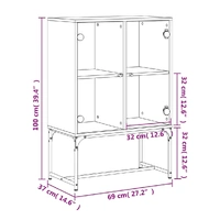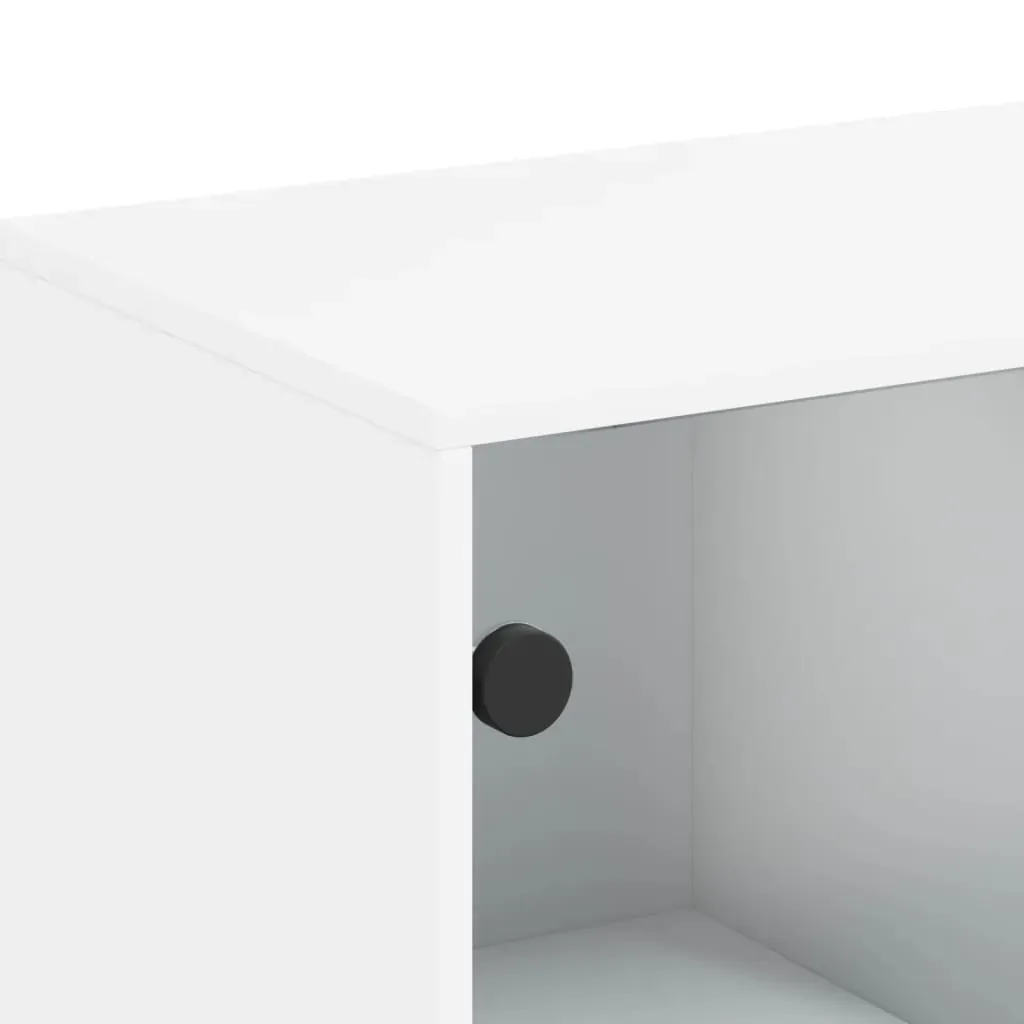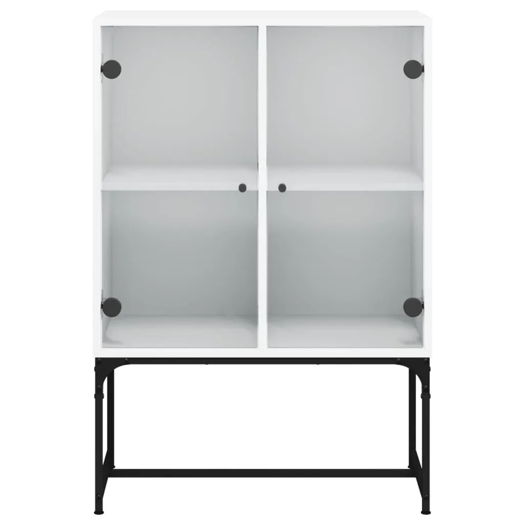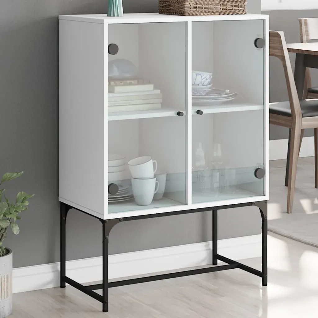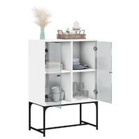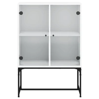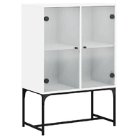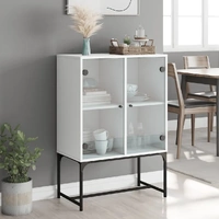 This side cabinet, featuring a timeless look, is meant to be an excellent addition to your home. Durable material: The engineered wood is of exceptional quality with smooth surface and also features strength, stability and resistance to moisture.Ample storage space: The cupboard offers ample storage space for keeping your various daily essentials well-organised and within easy reach.Displaying function: The top of the storage cabinet is great for displaying your decorative items, photo albums or small plants.Practical glass doors: Keep your space clutter-free by hiding small essentials behind the doors of the cabinet. In addition, the glass doors allow you to see inside the storage cabinet to display items beautifully. Warning:To prevent it from tipping over, this product must be used with the provided wall attachment device.