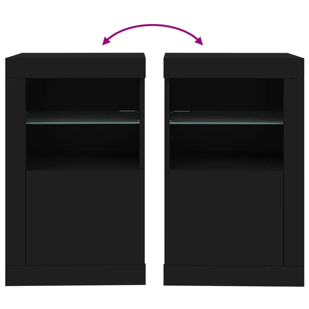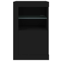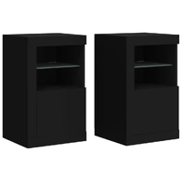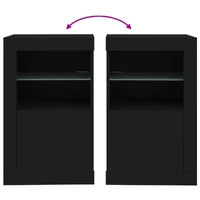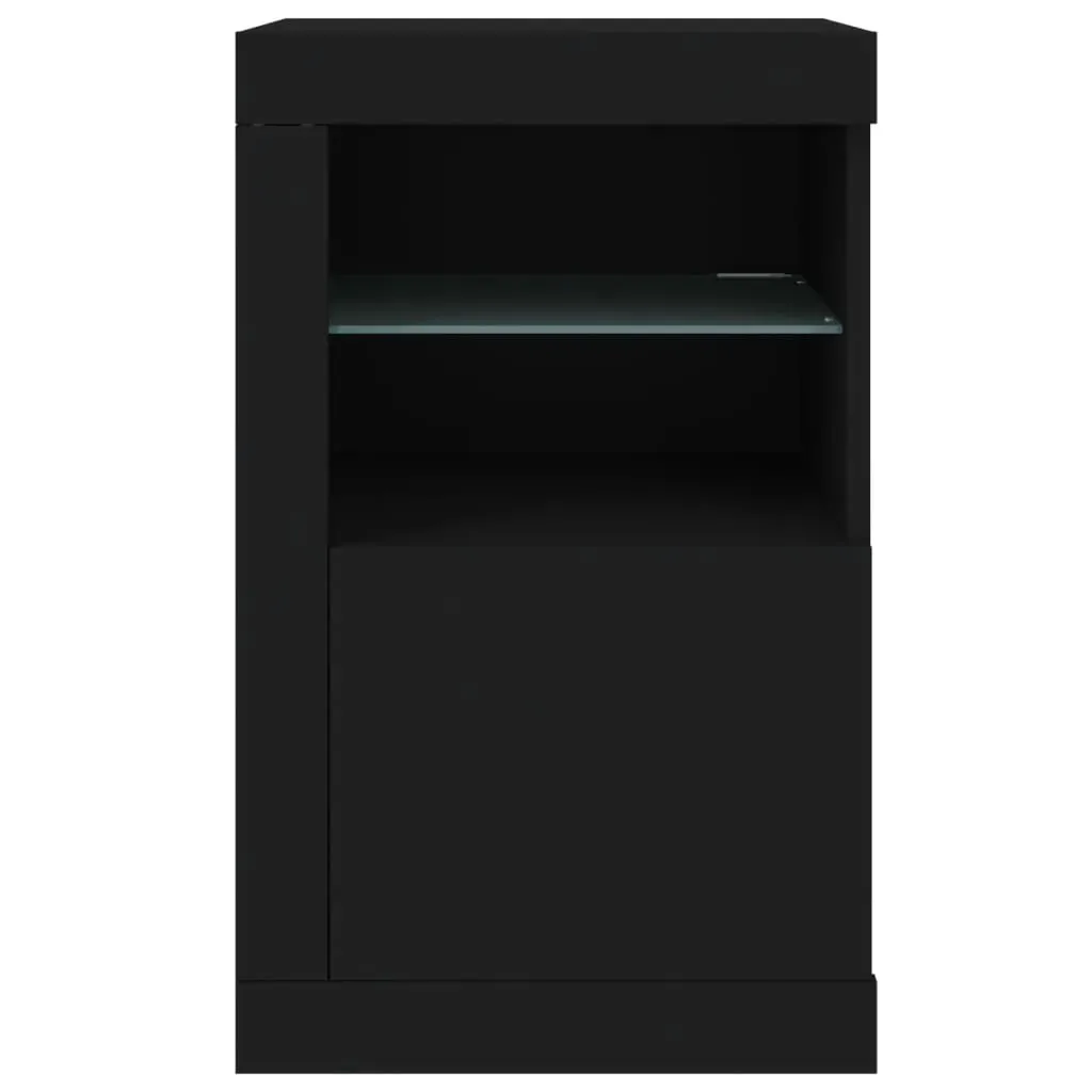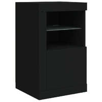 Featuring a trendy yet practical design, these side cabinets with LED lights will definitely become a focal point of your room. Durable material: The engineered wood is of exceptional quality with smooth surface and also features strength, stability and resistance to moisture.RGB LED lights: The cupboard is equipped with vibrant RGB LED lights. With various customisable menus, you can effortlessly change the colour of the lights and even set them to adjust automatically. These LED lights not only enhance the contemporary look of the cabinet but also add to its trendy appeal.Ample storage space: The storage cabinet features a glass shelf and a concealed storage area behind its doors, offering plenty of space to keep your everyday items neatly arranged and easily accessible.Flexible door: You can install the door either on the left side or right side based on your own needs. Good to know:The product has a USB connector that requires a certified 5V USB power source (not included). Warning:In order to prevent overturning, this product must be used with the wall attachment device provided.