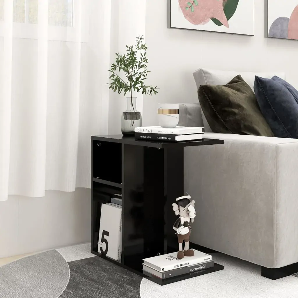 Add a flair of modern charm to your existing interior with this trendy and practical side table. This coffee table offers ample storage space to keep your essentials well organised and within reach. The top layer provides a stable surface where you can place your drinks, books or decorative items. This sofa table can be placed horizontally or vertically, making it a perfect addition to your current living space. Additionally, this end table is also easy to clean with a damp cloth.