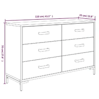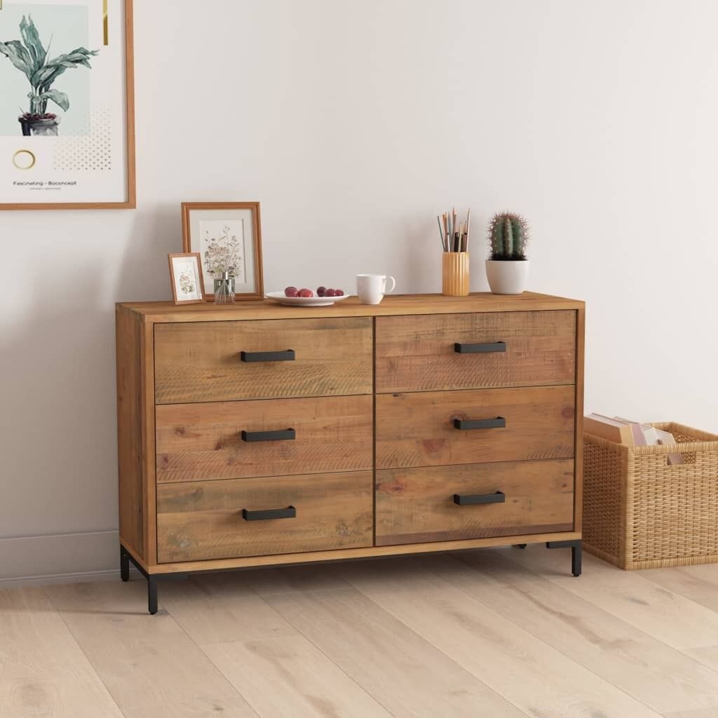 This must-have wooden sideboard brings a touch of vintage to your living area as well as is exceptionally practical. Solid recycled pinewood: The cabinet is crafted from recycled solid pinewood, which has some rough edges, defects and scratches, giving it a vintage industrial look.Ample storage space: Featuring 6 drawers, this sideboard cabinet provides ample storage space for keeping your various daily essentials well organised and within easy reach.Sturdy top: The sturdy top of the storage cabinet is ideal for displaying decorative objects, photo frames, or potted plants.Metal feet: The metal feet of this side cabinet ensure sturdiness and stability. Warning:In order to prevent overturning, this product must be used with the wall attachment device provided. Note:Each product comes with an assembly manual in the box for easy assembly.