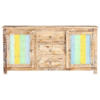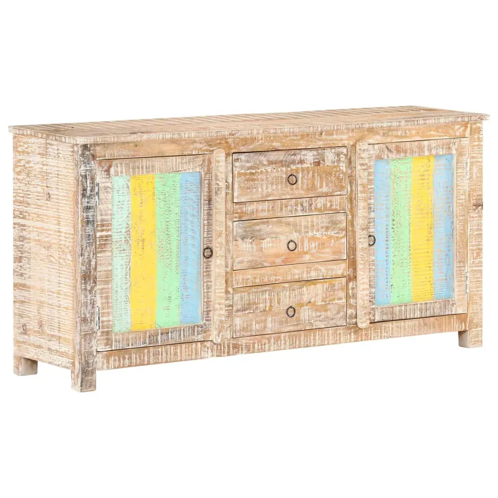 The wooden sideboard adds a vintage look and is specially designed for your living room. The side cabinet is made of rough acacia wood, making it stable and durable. The craftsmanship and the beautiful wood grains make every piece of furniture unique and slightly different from the next. This cupboard also features 2 doors and 3 drawers, providing ample storage space for storing your essential items organised and within reach. Important note: Colours and grains vary from piece to piece, making each piece unique. The delivery is random, ensuring the exclusivity and individuality of your product.