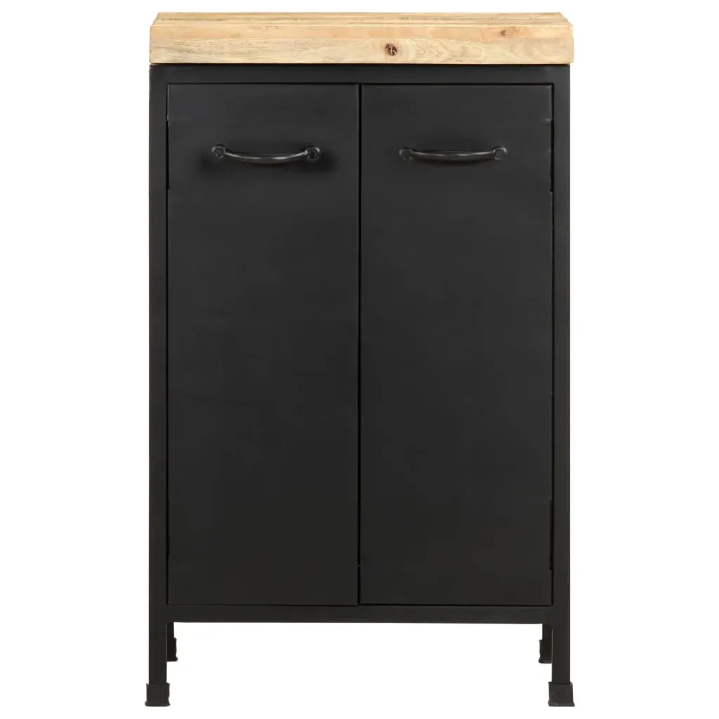 If you're looking for a simple touch of the rustic as well as industrial charm to add to your interior decor, this wooden sideboard will do the trick. The side cabinet is made of rough mango wood, a tropical hardwood with the strength to bear the weight. It also stands the wear and tear of time, making it stable and durable. The powder-coated iron frame also adds extra stability. This cupboard features 2 doors, providing ample storage space. Additionally, the sturdy wooden top is ideal for displaying decorative objects such as photo frames, potted plants, vases, etc. Important note: Colours and grains may vary from piece to piece, making each piece unique. The delivery is random, ensuring the exclusivity and individuality of your product.