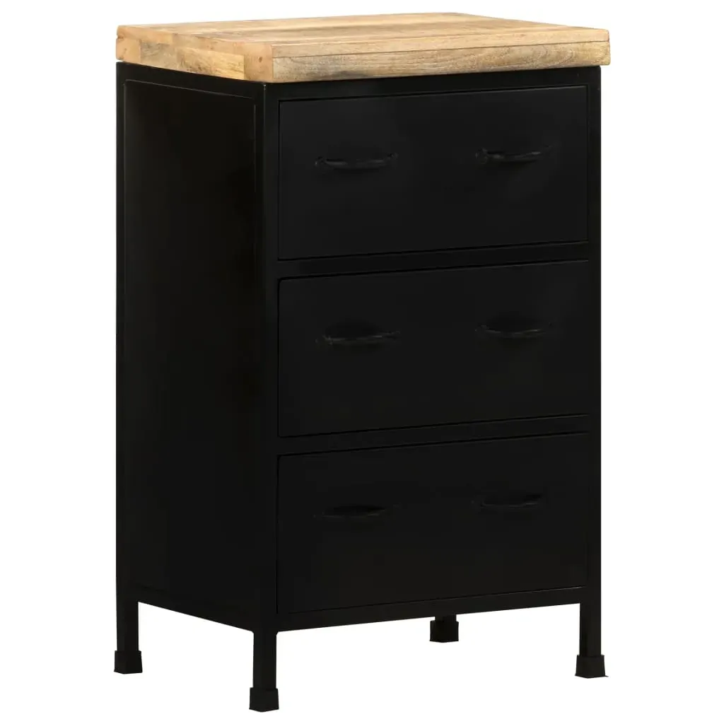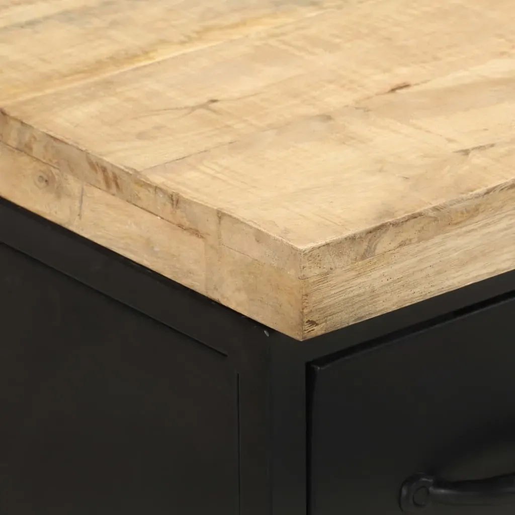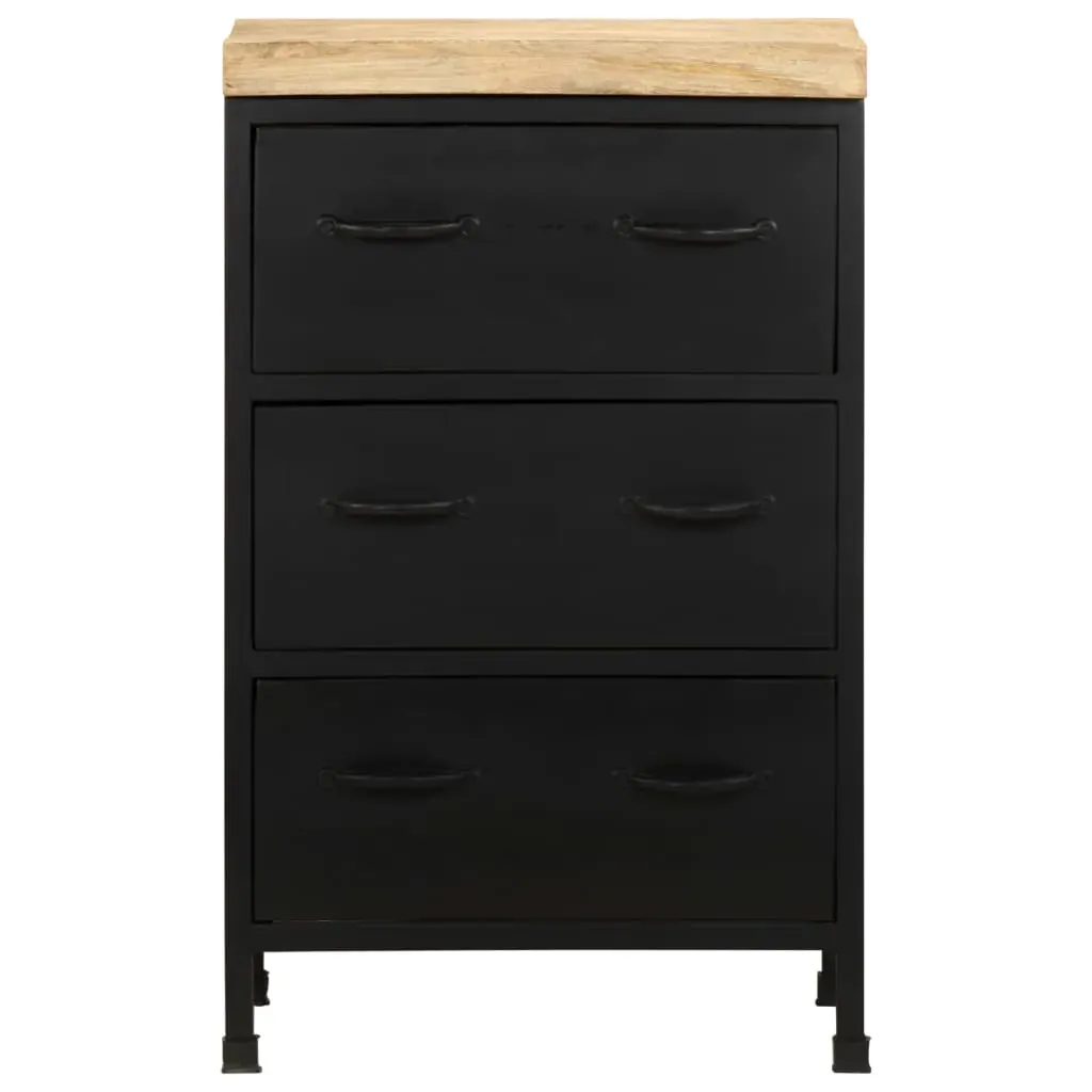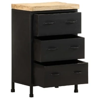 If you're looking for a simple touch of the rustic as well as industrial charm to add to your interior decor, this wooden sideboard will do the trick. The side cabinet is made of rough mango wood, a tropical hardwood with the strength to bear the weight. It also stands the wear and tear of time, making it stable and durable. The powder-coated iron frame also adds extra stability. This cupboard features 3 drawers, providing ample storage space. Additionally, the sturdy wooden top is ideal for displaying decorative objects such as photo frames, potted plants, vases, etc. Important note: Colours and grains may vary from piece to piece, making each piece unique. The delivery is random, ensuring the exclusivity and individuality of your product.