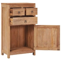 This colonial-style wooden sideboard exudes a rustic charm and will make a great addition to your interior. The side cabinet is crafted from solid teak wood, which makes it very durable and hard-wearing. The sturdy top is ideal for placing some decorative items like vases or potted plants. This cabinet provides ample storage space for keeping various items neatly organised. This product is easy to assemble.