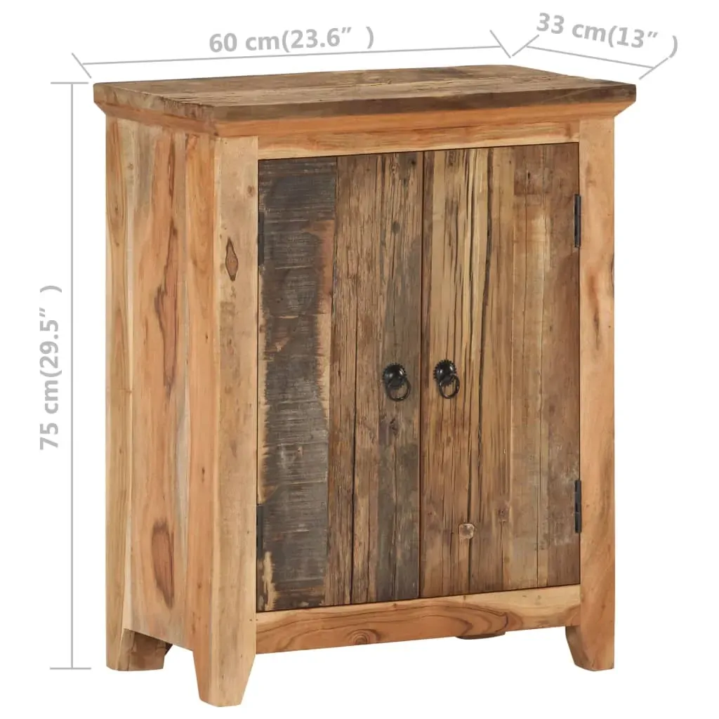 If you're looking to add a simplistic touch of rustic charm to your interior decor, this wooden sideboard is here! This door cabinet is made of solid acacia wood and solid reclaimed wood. Reclaimed wood is sourced from joists, floors and support beams from old demolished buildings. So, it consists of different types of wood like pine, teak, oak, mango wood, acacia, etc. This also means the reclaimed wood retains the characteristics of these types of wood. Reclaimed wood is already aged, weathered and dried, so it doesn't shrink or bend. The side cabinet is equipped with 2 compartments, providing ample storage room for keeping any items you'd like well organised. Important note: The grains and colours vary from piece to piece, making each of storage cabinets unique.