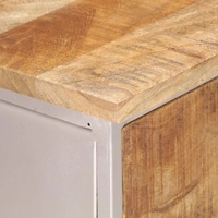 The wooden sideboard adds an industrial style to your home decor. This side cabinet is made of rough mango wood, a tropical hardwood with the strength to bear the weight. It also stands the wear and tear of time, making it stable and durable. The craftsmanship and the beautiful wood grains make every piece of furniture unique and slightly different from the next. This cupboard also features 2 doors and 1 drawer, providing ample storage space for storing your essential items organised and within reach. Additionally, the doors are made of real bicycle chain wheels, which are stylish and unique. Important note: Colours and grains vary from piece to piece, making each piece unique. The delivery is random as well.