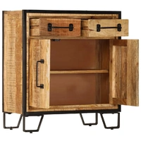 The wooden sideboard will make a timeless addition to your interior decor. The sideboard is made of solid mango wood and is highly stable and durable. Its sturdy top is ideal for placing decorative items such as vases or potted plants. The cabinet provides ample storage space for keeping your various items neatly organised. Its unique decorative patterns add to the sideboard's modern charm. The product is easy to assemble. Important note: The colours and grains of the wood may vary from piece to piece, making each piece unique and slightly different from the next. The delivery is random, ensuring the exclusivity and individuality of your product.