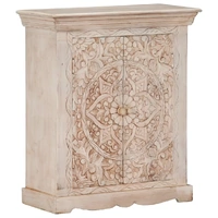 This wooden sideboard oozes an elegant charm that will add a truly eye-catching piece to your home decor. The cabinet is made of solid mango wood, a hardwood with dense grains. Rough mango wood not only has the strength to bear the weight, but also stands the wear and tear of time. Accordingly, this beautifully-designed dressoir is exceedingly stable, durable and aesthetically-appealing. The exquisite wood grains make every piece of furniture distinctive and slightly different from each other. This dressoir features 2 cabinets with 2 doors, providing ample space for storing your shoes, books, as well as various other items. Important note: The wood grains vary from piece to piece, making each piece unique. The delivery is random, ensuring the exclusivity and individuality of your product.