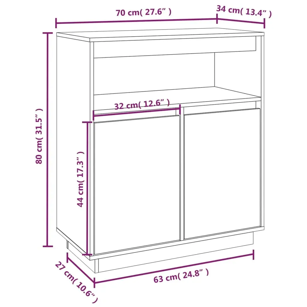 This classic sideboard is meant to make a decorative and practical addition to your home. Solid pine wood: Solid pine wood is a beautiful natural material. Pine wood has a straight grain, and the knots give the material its signature, rustic look.Ample storage space: The side cabinet provides ample storage space for keeping your daily essentials well organised.Practical cabinet top: The cabinet top is suitable for placing your favourite decorative items such as vases, potted plants, etc. Note:Each product comes with an assembly manual in the box for easy assembly.Warning:In order to prevent overturning, this product must be used with the wall attachment device provided.