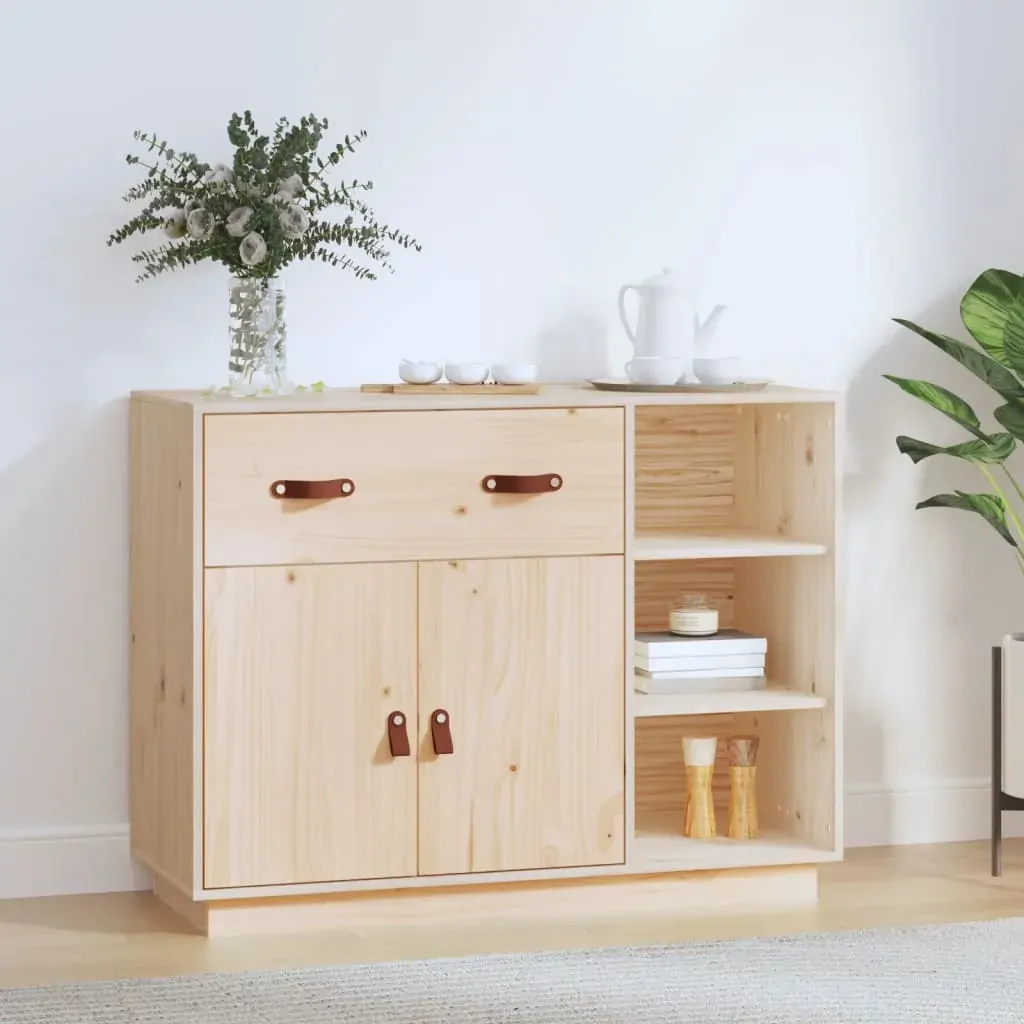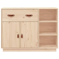 This wooden sideboard is meant to satisfy your various requirements and is an excellent addition to your room. Solid pine wood: Solid pine wood is a beautiful natural material. Pine wood has a straight grain, and the knots give the material its signature, rustic look.Stable frame: The wooden frame ensures sturdiness and stability.Ample storage space: The sideboard cabinet provides enough space for you to keep things organised and within easy reach.Sturdy top: The top of this cupboard is perfect for displaying your decorative items, picture frames and potted plants. Warning:In order to prevent overturning, this product must be used with the wall attachment device provided. Note:Each product comes with an assembly manual in the box for easy assembly.