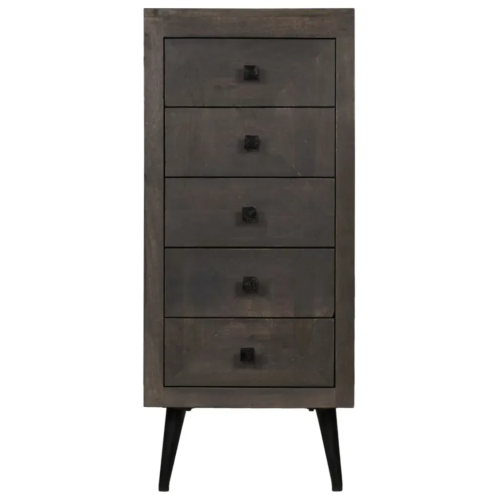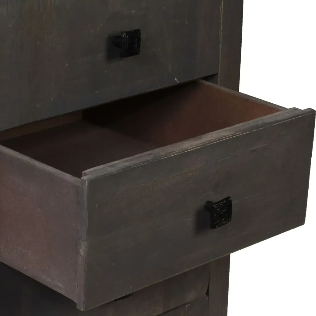 This solid wooden sideboard with lacquering will make a decorative as well as practical addition to your decor. It could also be used as highboard or storage cabinet. The sideboard is handmade of mango wood which is solid, stable and beautiful, and the craftsmanship adds to its spectacular retro style. Every step of the process is carried out with the greatest care, be it polishing or lacquering. The craftsmanship and the beautiful wood grains make every piece of furniture unique and slightly different from the next. Designed with 5 drawers, this highboard provides you with spacious storage space for keeping your important items organized and within reach. Assembly is easy. Important note: Colours and grains may vary from piece to piece, making each of our sideboards unique. The delivery is random, ensuring the exclusivity and individuality of your product.