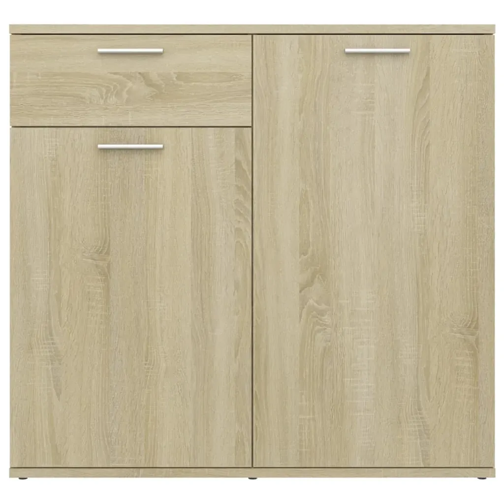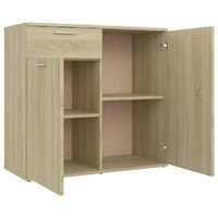 This sideboard, featuring a minimalist design, will make a practical as well as a highly decorative addition to your home. With 2 doors and a drawer, the sideboard provides ample storage space for books, multimedia appliances, and other items. The sturdy tabletop is ideal for displaying decorative objects, photo frames, or potted plants. Additionally. this cabinet is easy to clean with a damp cloth.