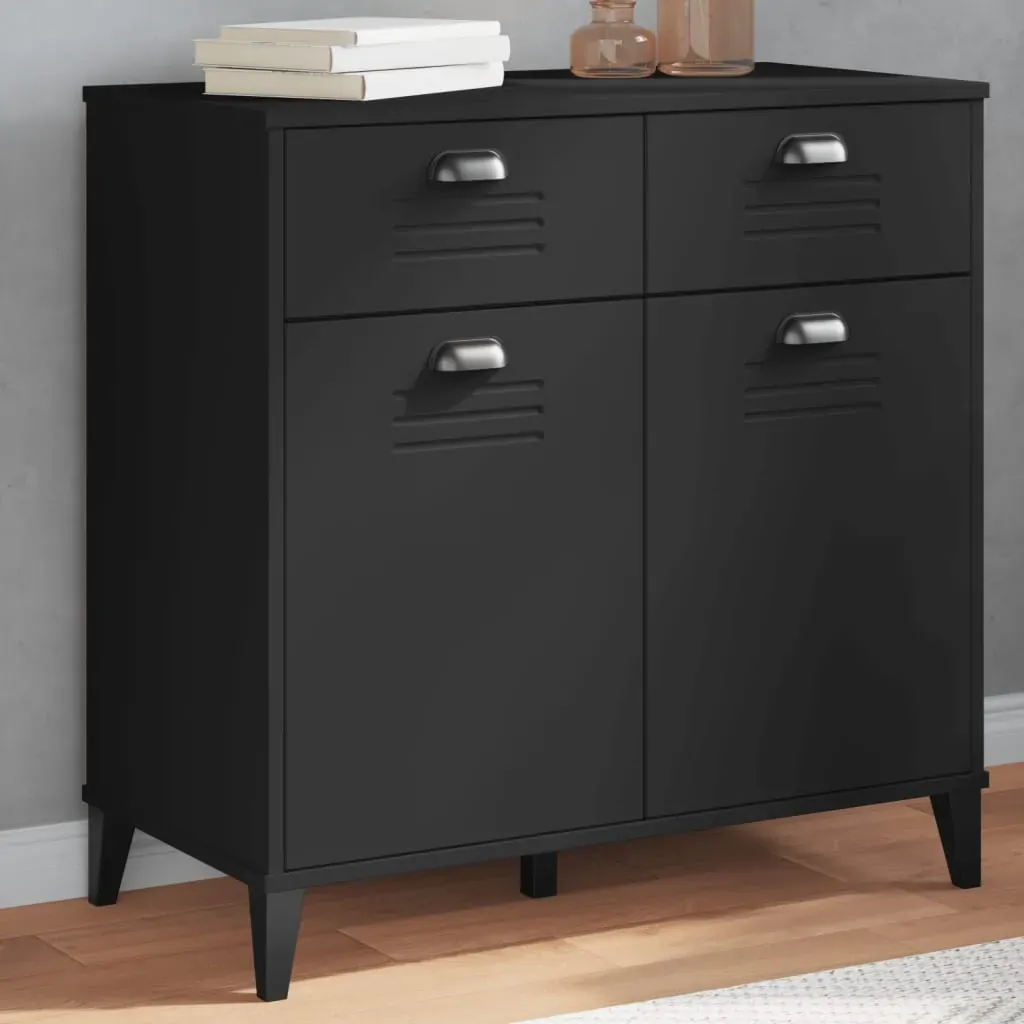 This classic sideboard featuring an industrial design is meant to meet your requirements and is an excellent addition to your room. Durable material: The engineered wood is of exceptional quality with smooth surface and also features strength, stability and resistance to moisture.Ample storage space: The buffet offers sufficient storage space to keep your essentials well-organised and within reach.Displaying function: The sturdy top of the hallway cabinet is ideal for displaying potted plants, framed photos and other decorative items.Practical handle: The side cabinet comes with handles that make it easy to open and close the cabinet while adding extra beauty. Warning:To prevent it from tipping over, this product must be used with the provided wall attachment device.