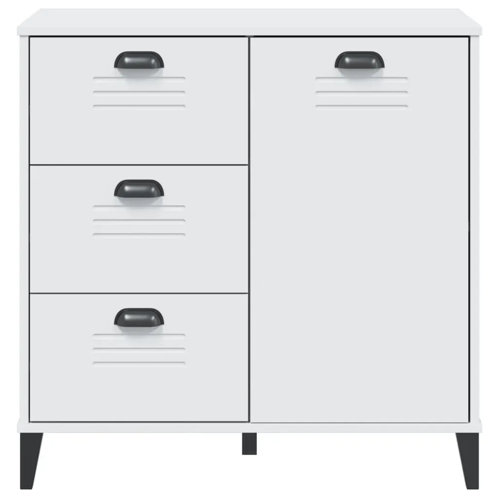 This classic sideboard featuring an industrial design is meant to meet your requirements and is an excellent addition to your room. Durable material: The engineered wood is of exceptional quality with smooth surface and also features strength, stability and resistance to moisture.Ample storage space: The buffet offers sufficient storage space to keep your essentials well-organised and within reach.Displaying function: The sturdy top of the hallway cabinet is ideal for displaying potted plants, framed photos and other decorative items.Practical handle: The side cabinet comes with handles that make it easy to open and close the cabinet while adding extra beauty. Warning:To prevent it from tipping over, this product must be used with the provided wall attachment device.