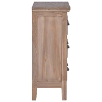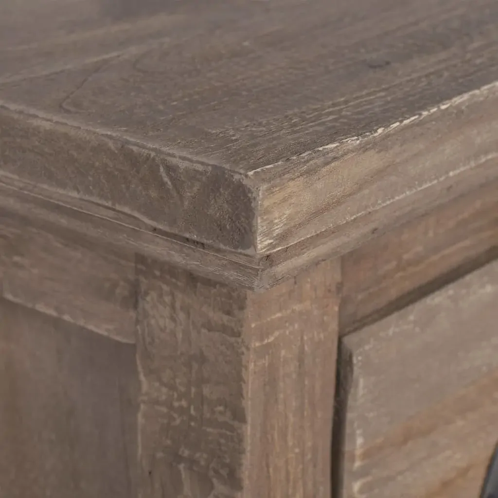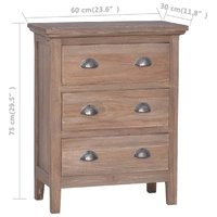 Our colonial-styled sideboard exudes a rustic charm and is meant to be the focal point of your bedroom, living area or lounge. This side cabinet is made of solid teak wood with a natural finish , known for its exceptional strength. Every step of the process is carried out with the highest care, be it polishing, painting or lacquering. This cabinet has a sturdy top, ideal for displaying decorative objects, photo frames, or even potted plants. The 3 drawers provide ample space for keeping all kinds of items organised and within easy reach. Important note: Colours and grains may vary from piece to piece, making each of our sideboards unique. The delivery is random as well.
