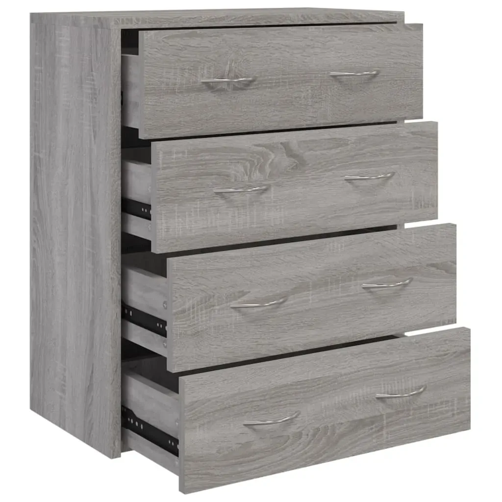 This sideboard with 4 drawers has ample storage space for your personal belongings. Durable material: The engineered wood is of exceptional quality with smooth surface and also features strength, stability and resistance to moisture.Ample storage space: The cabinet has 4 smooth-running drawers with handles, which provide ample storage space for your personal belongings and will help keep your room tidy.Sturdy top: You can also display things such as photos, books and potted plants on top of the sideboard cabinet. Note:Each product comes with an assembly manual in the box for easy assembly. Warning:In order to prevent overturning, this product must be used with the wall attachment device provided