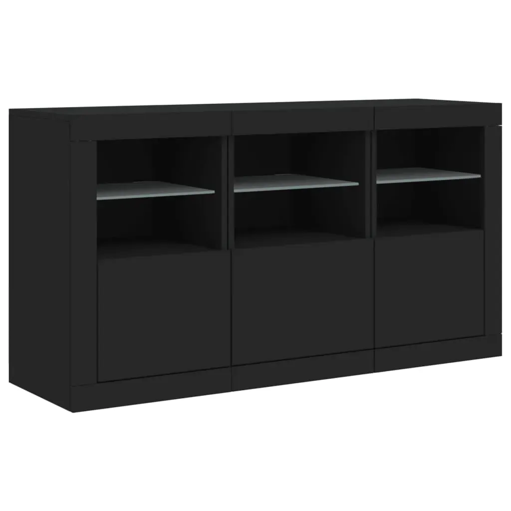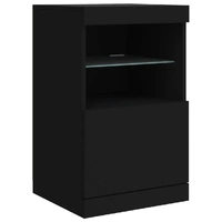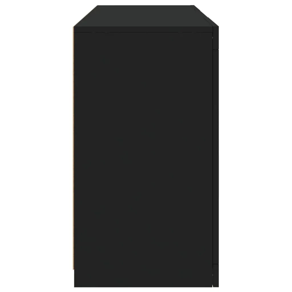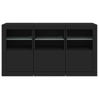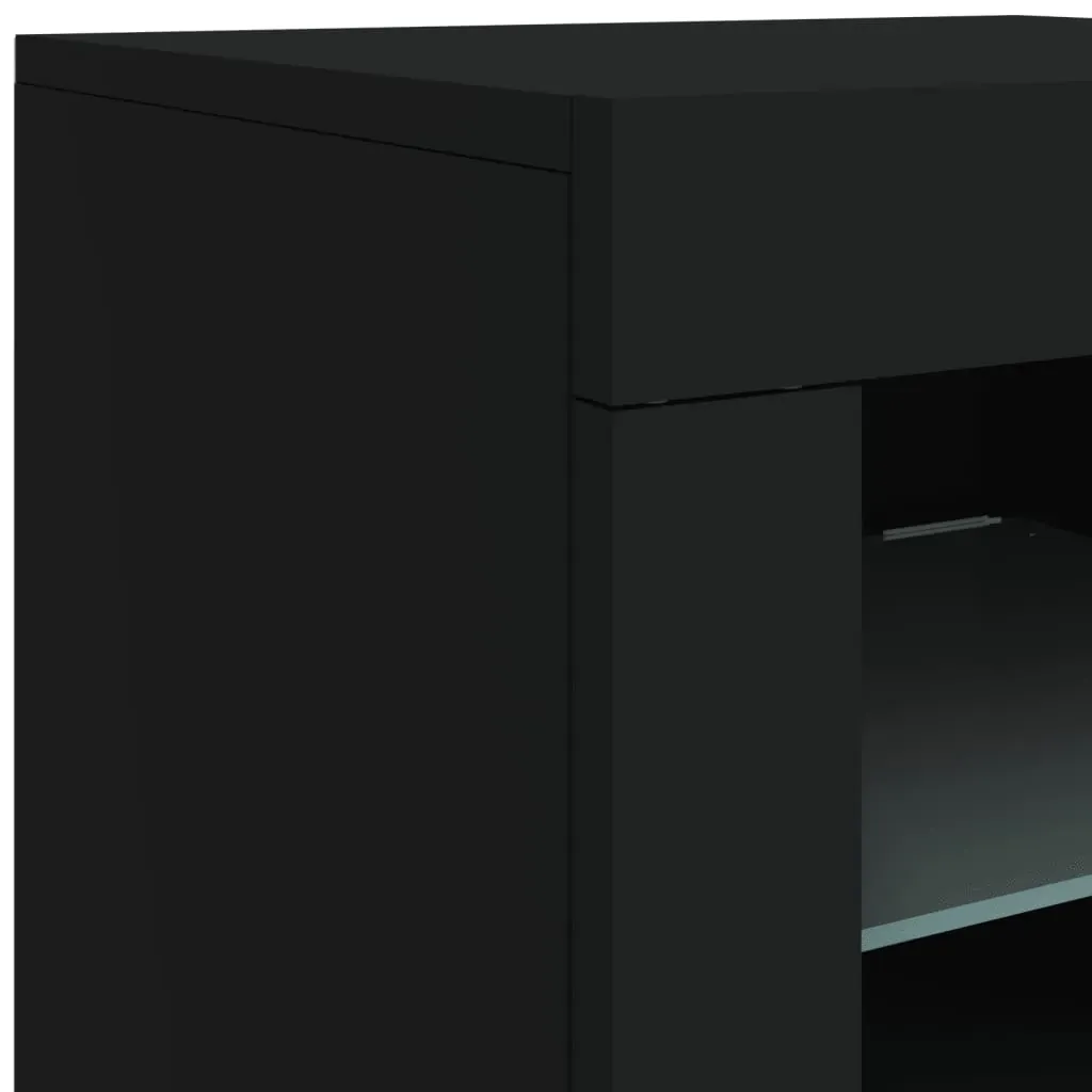 Decorate your room with this modern sideboard with LED lights, it easily blends with furniture in any style at your house. Durable material: The engineered wood is of exceptional quality with smooth surface and also features strength, stability and resistance to moisture.RGB LED lights: The buffet is equipped with vibrant RGB LED lights. With various customisable menus, you can effortlessly change the colour of the lights and even set them to adjust automatically. These LED lights not only enhance the contemporary look of the sideboard cabinet but also add to its trendy appeal.Ample storage space: The storage cabinet offers plenty of space to keep your everyday items neatly arranged and easily accessible.Displaying function: The sturdy top of the hallway cabinet is ideal for displaying decorative objects, photo frames, or potted plants.Practical doors: Keep your essentials free from dust by hiding them behind the doors of the side cabinet. Good to know:The product has a USB connector that requires a certified 5V USB power source (not included). Warning:To prevent it being overturned, this product must be used with the provided wall attachment device.