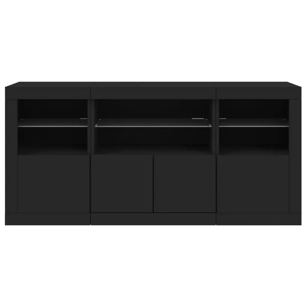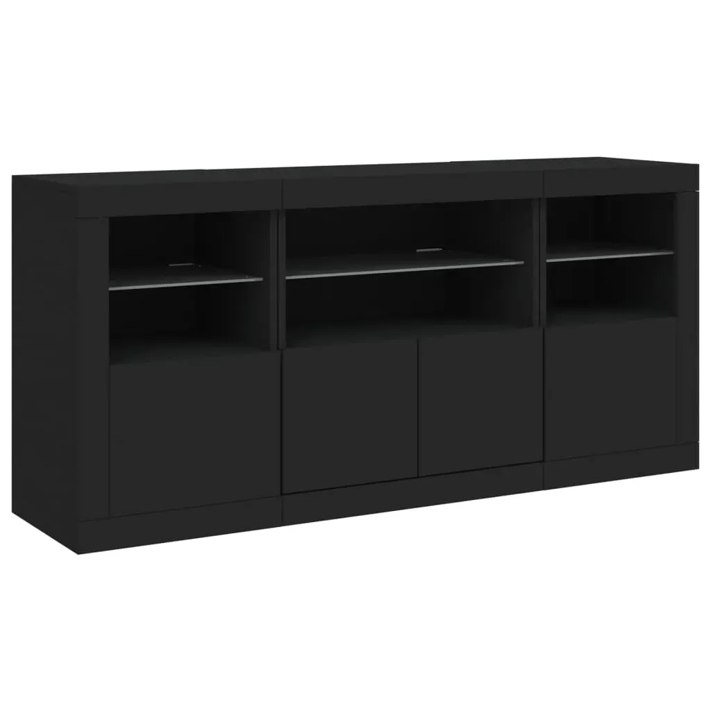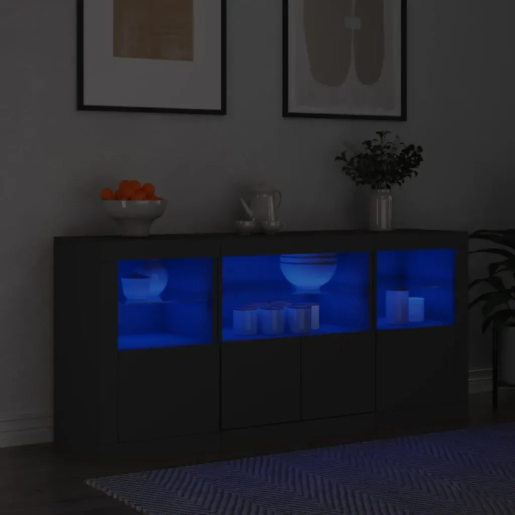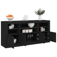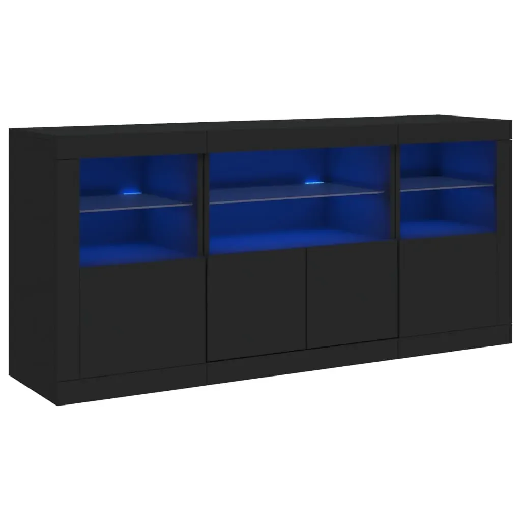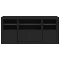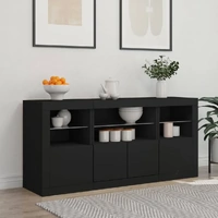 Decorate your room with this modern sideboard with LED lights, it easily blends with furniture in any style at your house. Durable material: The engineered wood is of exceptional quality with smooth surface and also features strength, stability and resistance to moisture.RGB LED lights: The buffet is equipped with vibrant RGB LED lights. With various customisable menus, you can effortlessly change the colour of the lights and even set them to adjust automatically. These LED lights not only enhance the contemporary look of the sideboard cabinet but also add to its trendy appeal.Ample storage space: The storage cabinet offers plenty of space to keep your everyday items neatly arranged and easily accessible.Displaying function: The sturdy top of the hallway cabinet is ideal for displaying decorative objects, photo frames, or potted plants.Practical doors: Keep your essentials free from dust by hiding them behind the doors of the side cabinet. Good to know:The product has a USB connector that requires a certified 5V USB power source (not included). Warning:To prevent it being overturned, this product must be used with the provided wall attachment device.