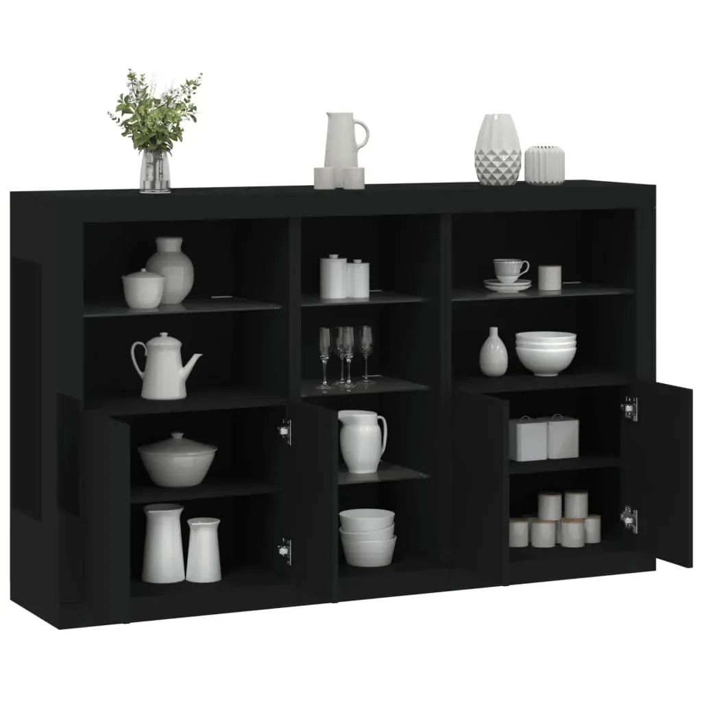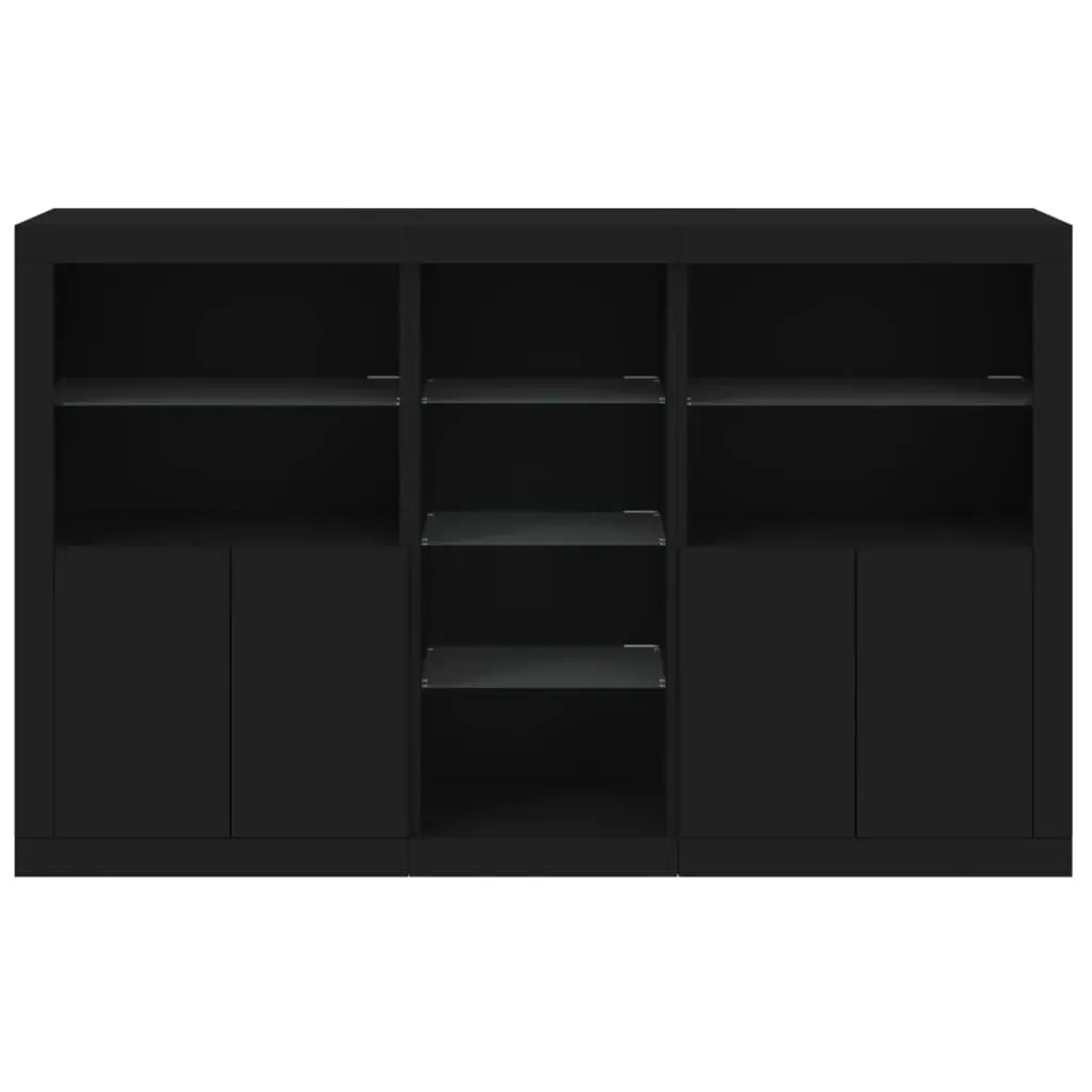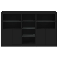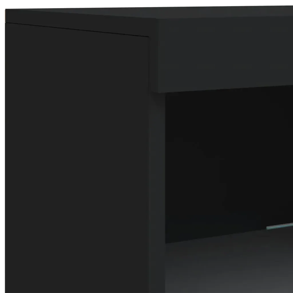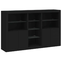 Decorate your room with this modern sideboard with LED lights, it easily blends with furniture in any style at your house. Durable material: The engineered wood is of exceptional quality with smooth surface and also features strength, stability and resistance to moisture.RGB LED lights: The buffet is equipped with vibrant RGB LED lights. With various customisable menus, you can effortlessly change the colour of the lights and even set them to adjust automatically. These LED lights not only enhance the contemporary look of the sideboard cabinet but also add to its trendy appeal.Ample storage space: The storage cabinet offers plenty of space to keep your everyday items neatly arranged and easily accessible.Displaying function: The sturdy top of the hallway cabinet is ideal for displaying decorative objects, photo frames, or potted plants.Practical doors: Keep your essentials free from dust by hiding them behind the doors of the side cabinet. Good to know:The product has a USB connector that requires a certified 5V USB power source (not included). Warning:To prevent it being overturned, this product must be used with the provided wall attachment device.