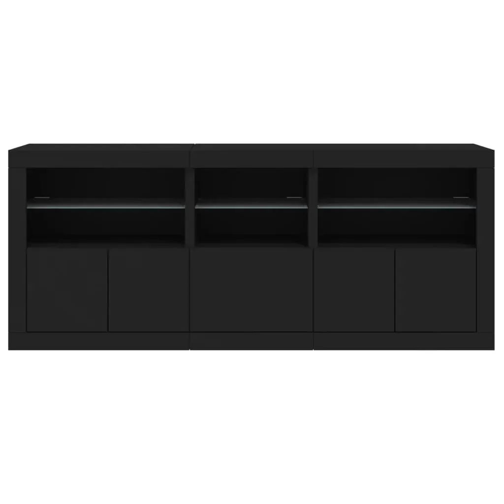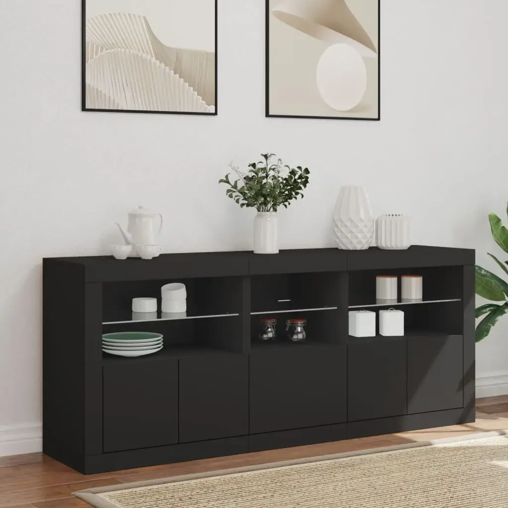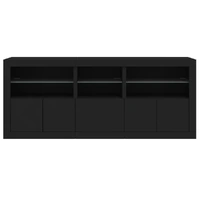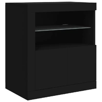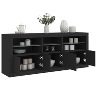 Decorate your room with this modern sideboard with LED lights, it easily blends with furniture in any style at your house. Durable material: The engineered wood is of exceptional quality with smooth surface and also features strength, stability and resistance to moisture.RGB LED lights: The buffet is equipped with vibrant RGB LED lights. With various customisable menus, you can effortlessly change the colour of the lights and even set them to adjust automatically. These LED lights not only enhance the contemporary look of the sideboard cabinet but also add to its trendy appeal.Ample storage space: The storage cabinet offers plenty of space to keep your everyday items neatly arranged and easily accessible.Displaying function: The sturdy top of the hallway cabinet is ideal for displaying decorative objects, photo frames, or potted plants.Practical doors: Keep your essentials free from dust by hiding them behind the doors of the side cabinet. Good to know:The product has a USB connector that requires a certified 5V USB power source (not included). Warning:To prevent it being overturned, this product must be used with the provided wall attachment device.