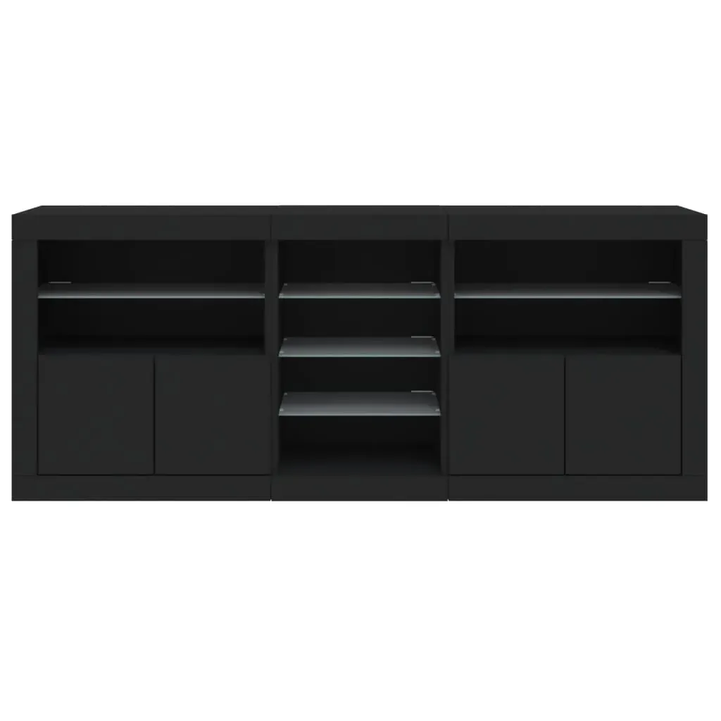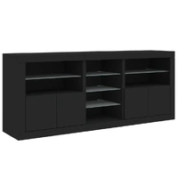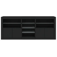 Decorate your room with this modern sideboard with LED lights, it easily blends with furniture in any style at your house. Durable material: The engineered wood is of exceptional quality with smooth surface and also features strength, stability and resistance to moisture.RGB LED lights: The buffet is equipped with vibrant RGB LED lights. With various customisable menus, you can effortlessly change the colour of the lights and even set them to adjust automatically. These LED lights not only enhance the contemporary look of the sideboard cabinet but also add to its trendy appeal.Ample storage space: The storage cabinet offers plenty of space to keep your everyday items neatly arranged and easily accessible.Displaying function: The sturdy top of the hallway cabinet is ideal for displaying decorative objects, photo frames, or potted plants.Practical doors: Keep your essentials free from dust by hiding them behind the doors of the side cabinet. Good to know:The product has a USB connector that requires a certified 5V USB power source (not included). Warning:To prevent it being overturned, this product must be used with the provided wall attachment device.