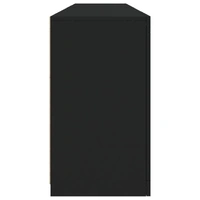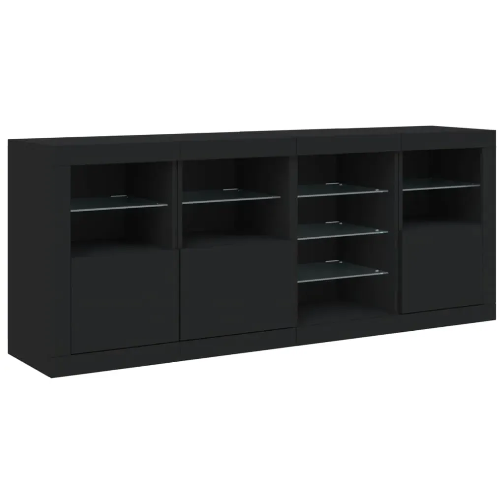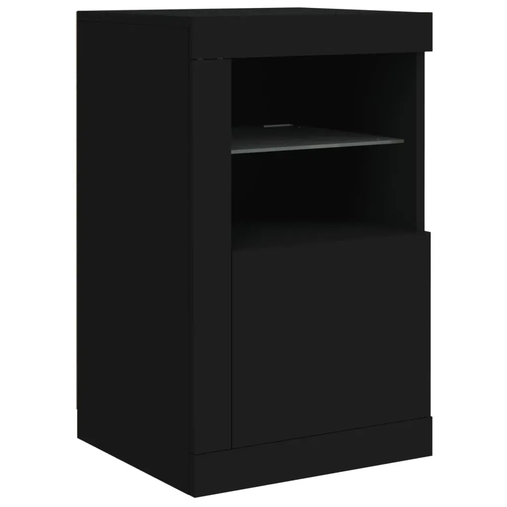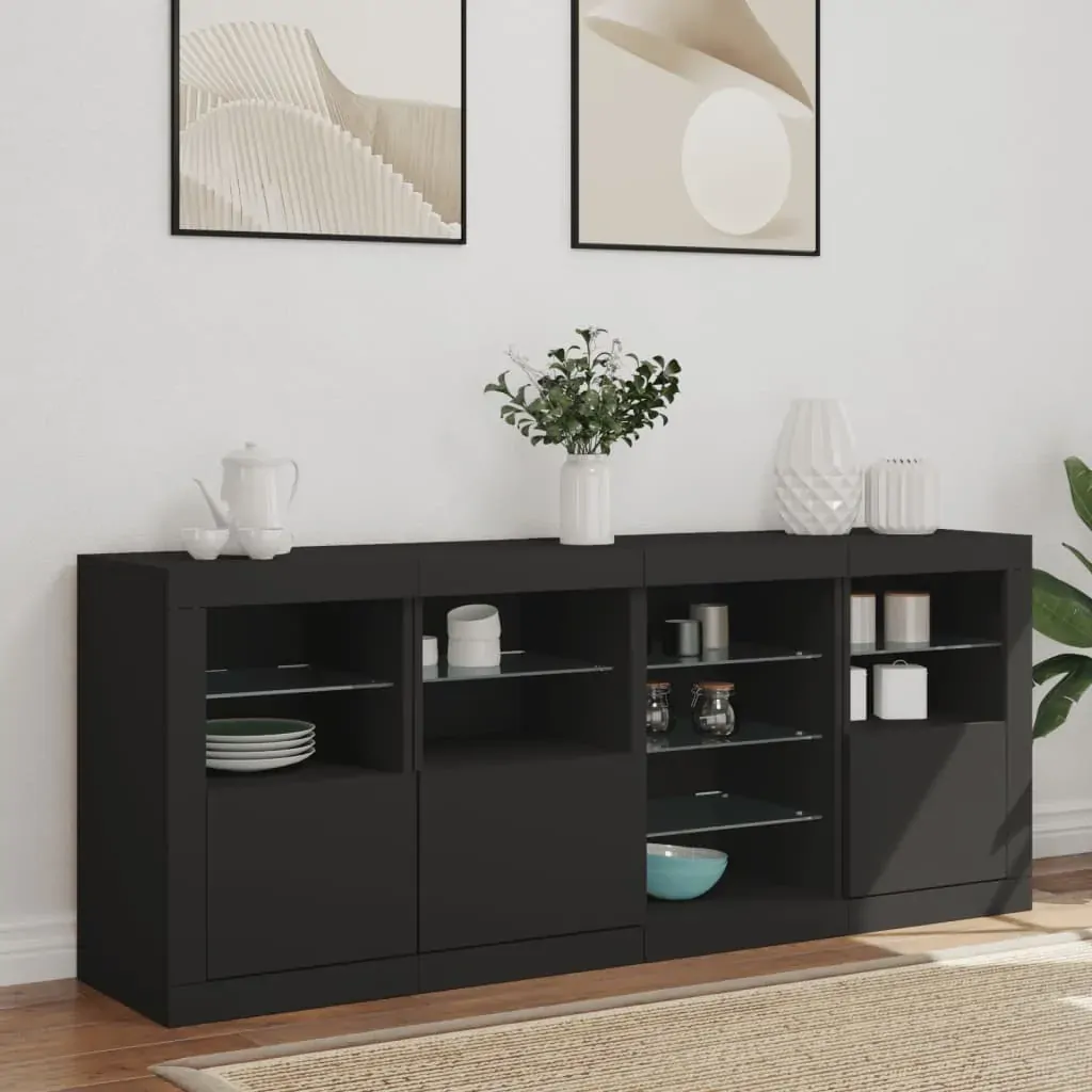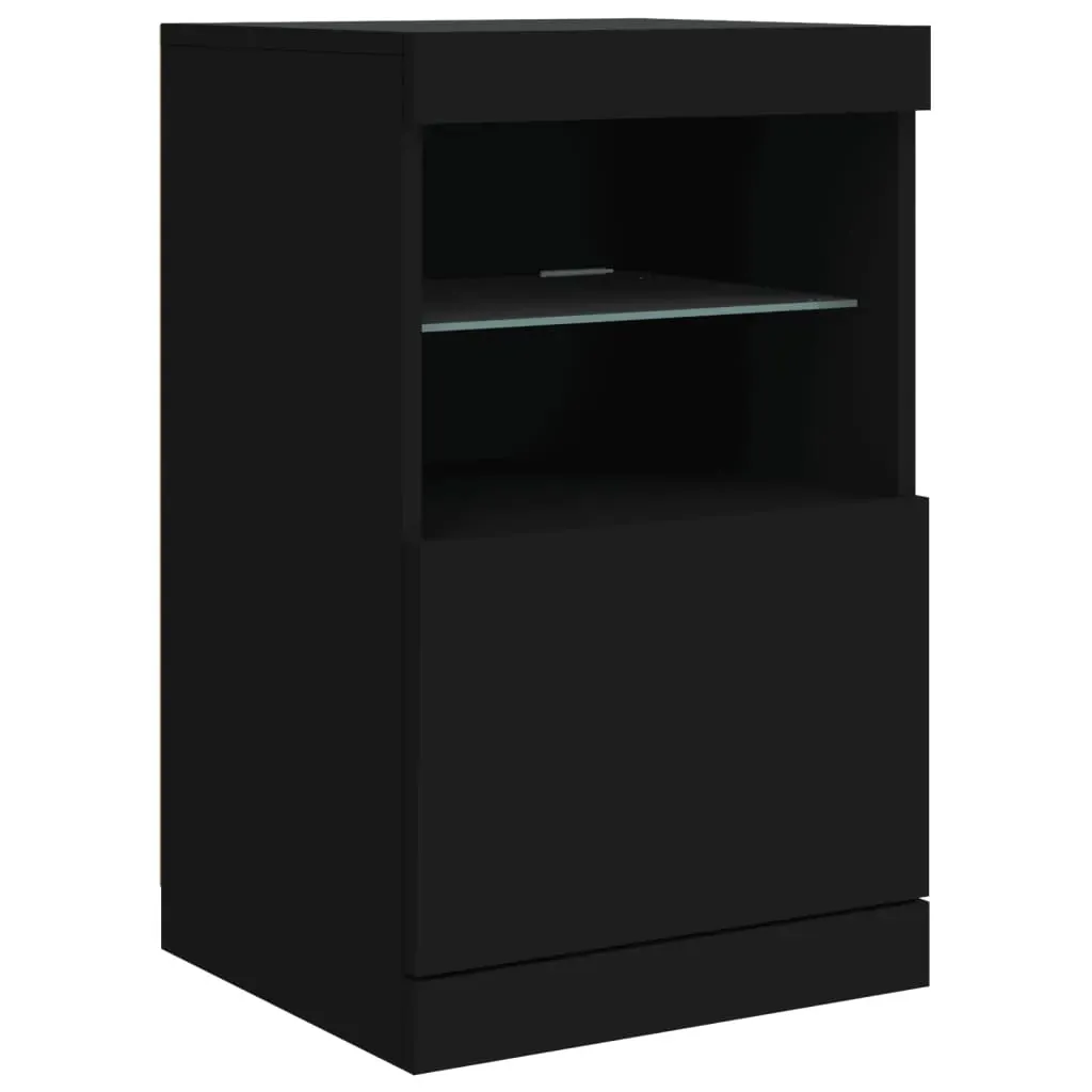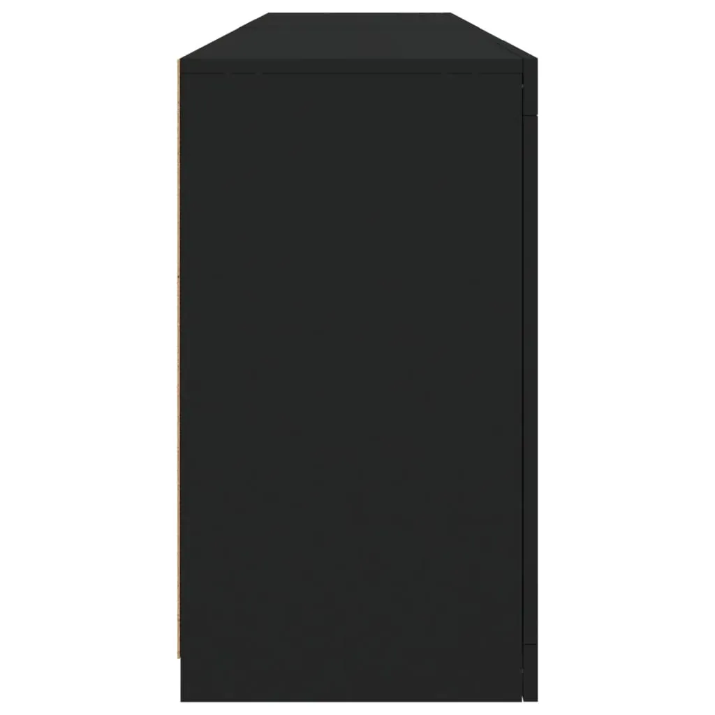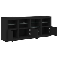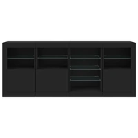 Decorate your room with this modern sideboard with LED lights, it easily blends with furniture in any style at your house. Durable material: The engineered wood is of exceptional quality with smooth surface and also features strength, stability and resistance to moisture.RGB LED lights: The buffet is equipped with vibrant RGB LED lights. With various customisable menus, you can effortlessly change the colour of the lights and even set them to adjust automatically. These LED lights not only enhance the contemporary look of the sideboard cabinet but also add to its trendy appeal.Ample storage space: The storage cabinet offers plenty of space to keep your everyday items neatly arranged and easily accessible.Displaying function: The sturdy top of the hallway cabinet is ideal for displaying decorative objects, photo frames, or potted plants.Practical doors: Keep your essentials free from dust by hiding them behind the doors of the side cabinet. Good to know:The product has a USB connector that requires a certified 5V USB power source (not included). Warning:To prevent it being overturned, this product must be used with the provided wall attachment device.