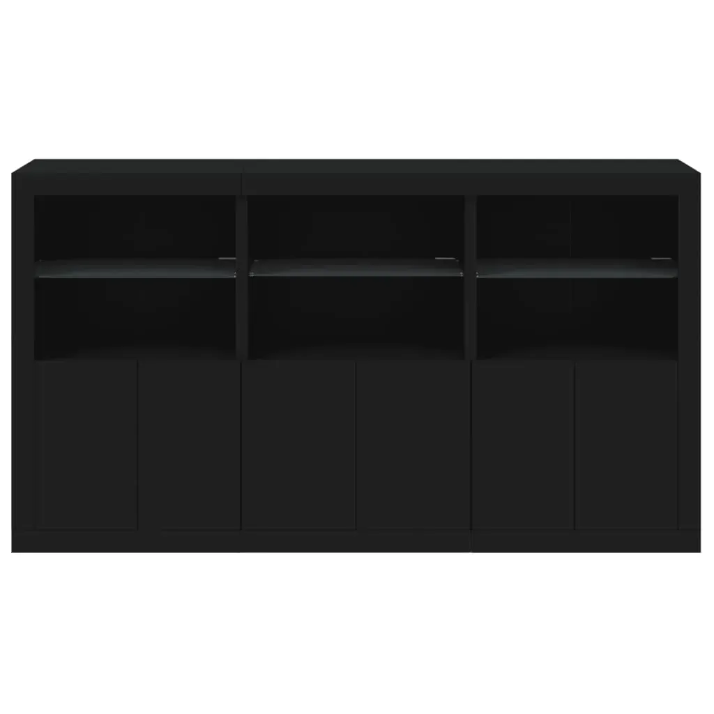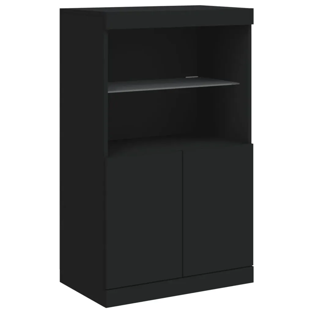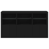 Decorate your room with this modern sideboard with LED lights, it easily blends with furniture in any style at your house. Durable material: The engineered wood is of exceptional quality with smooth surface and also features strength, stability and resistance to moisture.RGB LED lights: The buffet is equipped with vibrant RGB LED lights. With various customisable menus, you can effortlessly change the colour of the lights and even set them to adjust automatically. These LED lights not only enhance the contemporary look of the sideboard cabinet but also add to its trendy appeal.Ample storage space: The storage cabinet offers plenty of space to keep your everyday items neatly arranged and easily accessible.Displaying function: The sturdy top of the hallway cabinet is ideal for displaying decorative objects, photo frames, or potted plants.Practical doors: Keep your essentials free from dust by hiding them behind the doors of the side cabinet. Good to know:The product has a USB connector that requires a certified 5V USB power source (not included). Warning:To prevent it being overturned, this product must be used with the provided wall attachment device.
