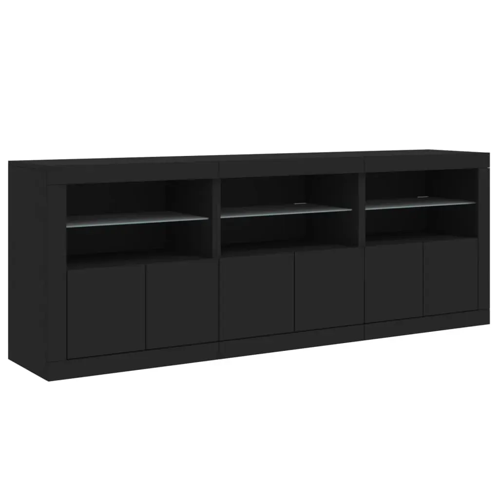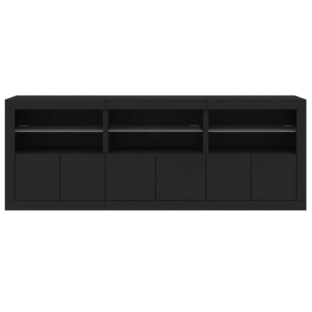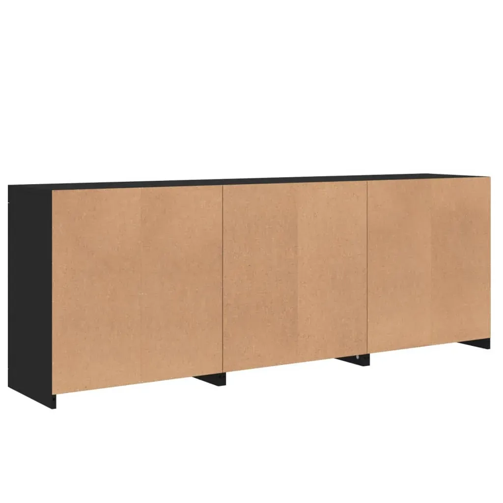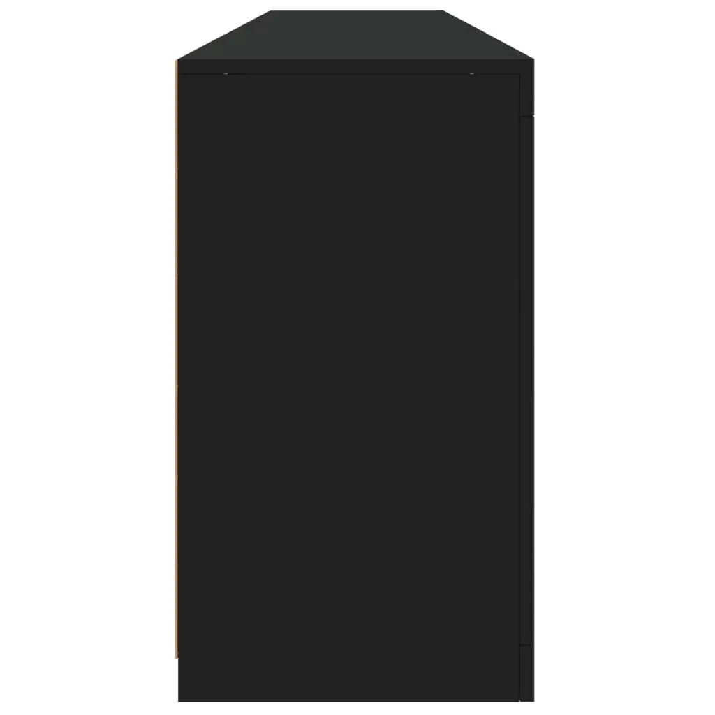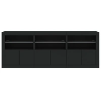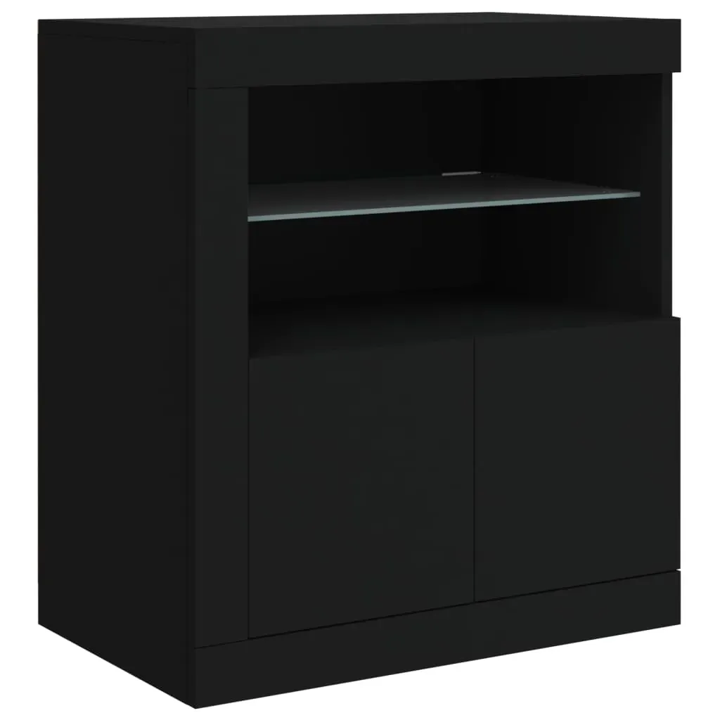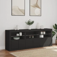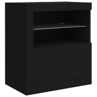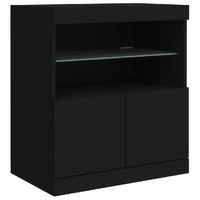 Decorate your room with this modern sideboard with LED lights, it easily blends with furniture in any style at your house. Durable material: The engineered wood is of exceptional quality with smooth surface and also features strength, stability and resistance to moisture.RGB LED lights: The buffet is equipped with vibrant RGB LED lights. With various customisable menus, you can effortlessly change the colour of the lights and even set them to adjust automatically. These LED lights not only enhance the contemporary look of the sideboard cabinet but also add to its trendy appeal.Ample storage space: The storage cabinet offers plenty of space to keep your everyday items neatly arranged and easily accessible.Displaying function: The sturdy top of the hallway cabinet is ideal for displaying decorative objects, photo frames, or potted plants.Practical doors: Keep your essentials free from dust by hiding them behind the doors of the side cabinet. Good to know:The product has a USB connector that requires a certified 5V USB power source (not included). Warning:To prevent it being overturned, this product must be used with the provided wall attachment device.