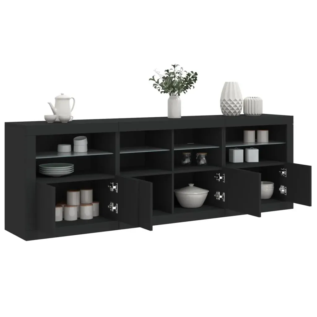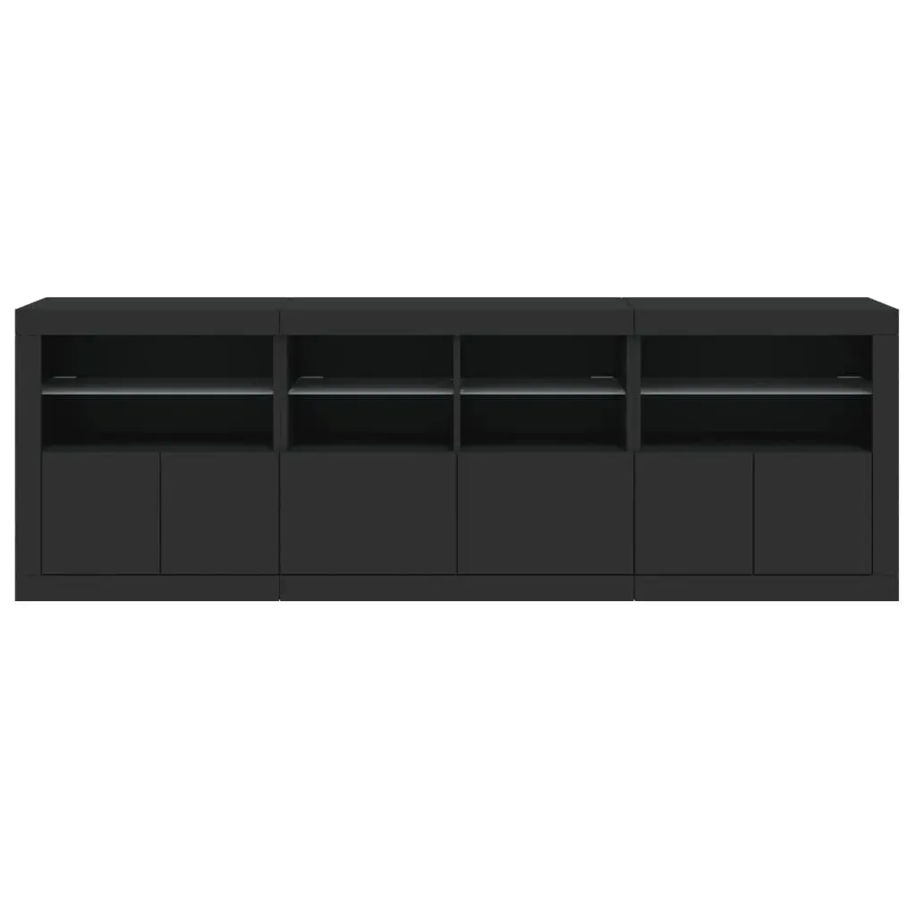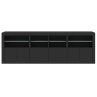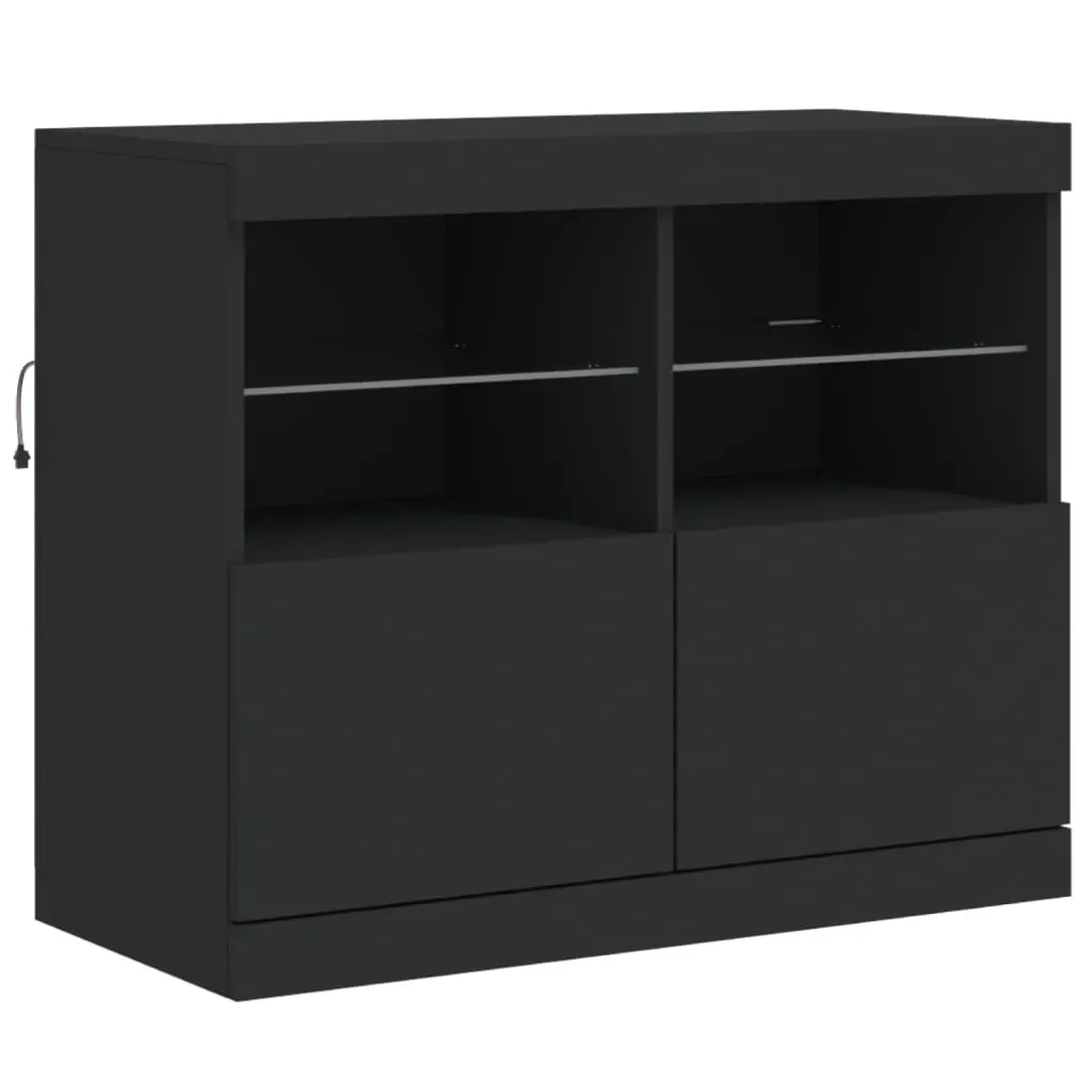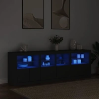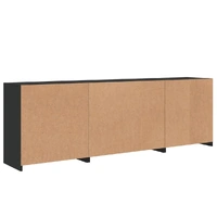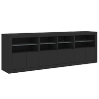 Decorate your room with this modern sideboard with LED lights, it easily blends with furniture in any style at your house. Durable material: The engineered wood is of exceptional quality with smooth surface and also features strength, stability and resistance to moisture.RGB LED lights: The buffet is equipped with vibrant RGB LED lights. With various customisable menus, you can effortlessly change the colour of the lights and even set them to adjust automatically. These LED lights not only enhance the contemporary look of the sideboard cabinet but also add to its trendy appeal.Ample storage space: The storage cabinet offers plenty of space to keep your everyday items neatly arranged and easily accessible.Displaying function: The sturdy top of the hallway cabinet is ideal for displaying decorative objects, photo frames, or potted plants.Practical doors: Keep your essentials free from dust by hiding them behind the doors of the side cabinet. Good to know:The product has a USB connector that requires a certified 5V USB power source (not included). Warning:To prevent it being overturned, this product must be used with the provided wall attachment device.