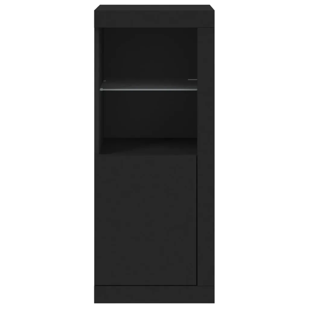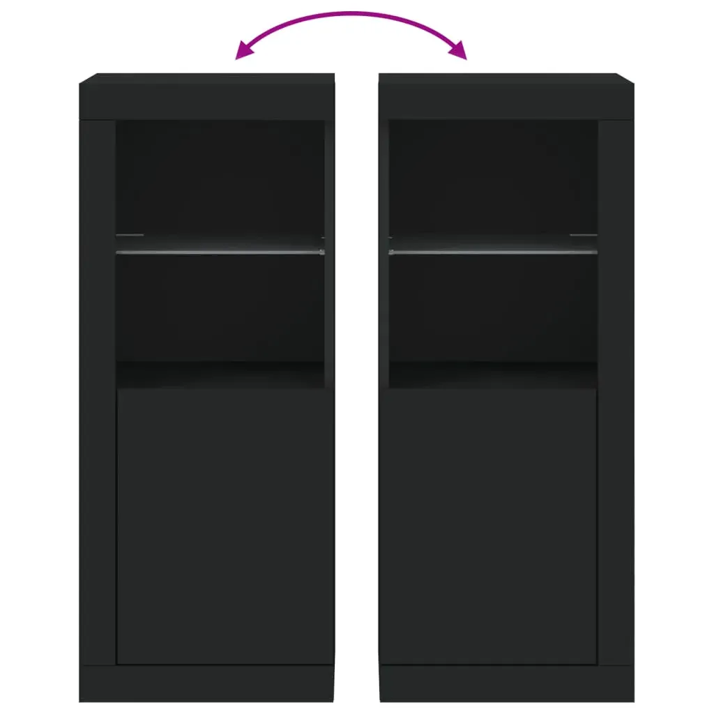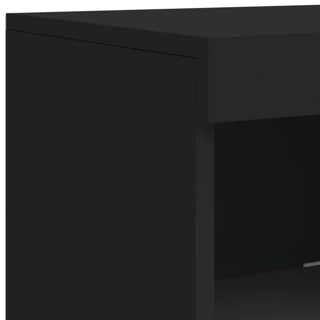 Decorate your room with this modern sideboard with LED lights, it easily blends with furniture in any style at your house. Durable material: The engineered wood is of exceptional quality with a smooth surface and features strength, stability and resistance to moisture.Ample storage space: The buffet provides plenty of storage space for keeping your magazines, books, remote controls and other small items well-organised and within easy reach.Displaying function: The sturdy top of sideboard cabinet is ideal for displaying decorative objects, photo frames, or potted plants.RGB LED lights: The storage cabinet is equipped with vibrant RGB LED lights. With various customisable menus, you can effortlessly change the colour of the lights and even set them to adjust automatically. Warning:To prevent it being overturned, this product must be used with the provided wall attachment device. Good to know:The product has a USB connector that requires a certified 5V USB power source (not included).