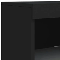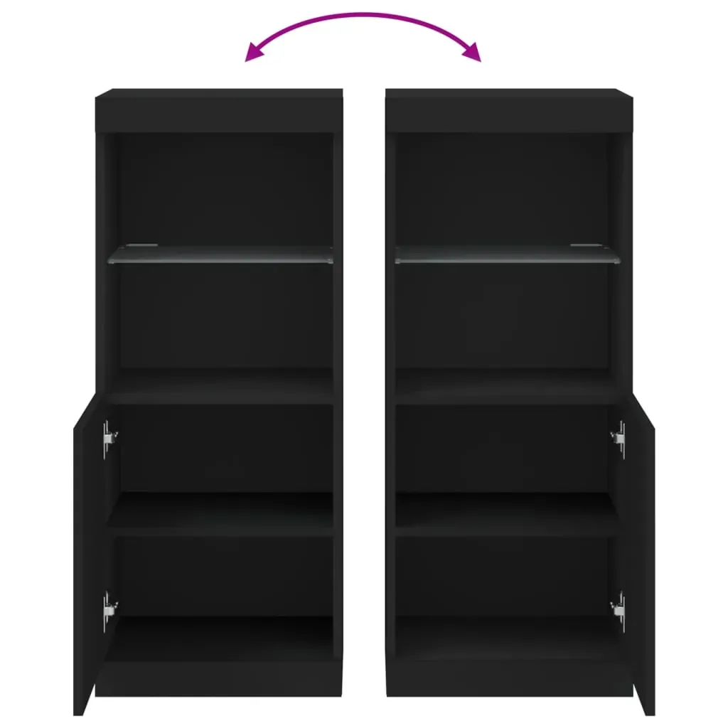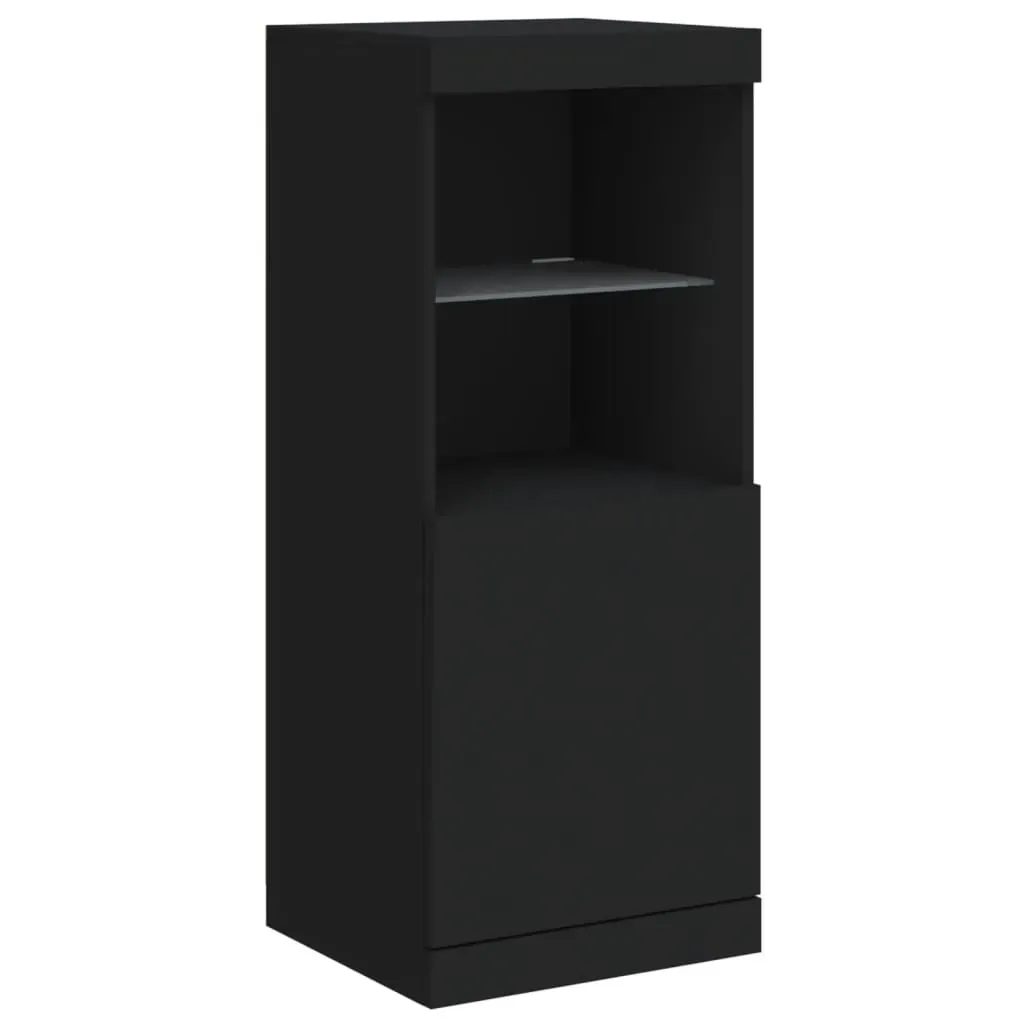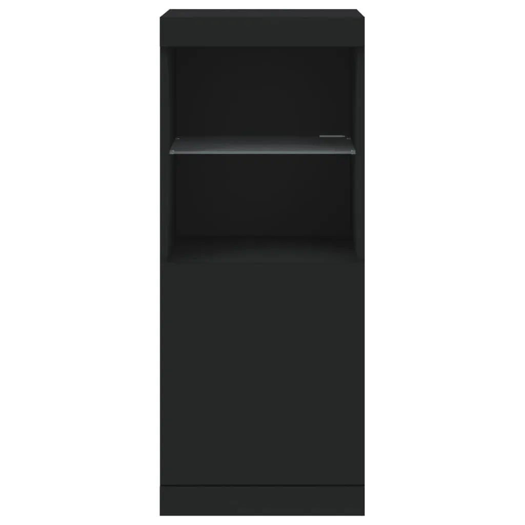 Decorate your room with this modern sideboard with LED lights, it easily blends with furniture in any style at your house. Durable material: The engineered wood is of exceptional quality with a smooth surface and features strength, stability and resistance to moisture.Ample storage space: The buffet provides plenty of storage space for keeping your magazines, books, remote controls and other small items well-organised and within easy reach.Displaying function: The sturdy top of the sideboard cabinet is ideal for displaying decorative objects, photo frames, or potted plants.Adjustable LED lights: This storage cabinet is equipped with RGB LED lights, which has different menus to change the light colour and adjust it automatically, decorating your home colourful and beautiful. Warning:To prevent it being overturned, this product must be used with the provided wall attachment device. Good to know:The product has a USB connector that requires a certified 5V USB power source (not included).