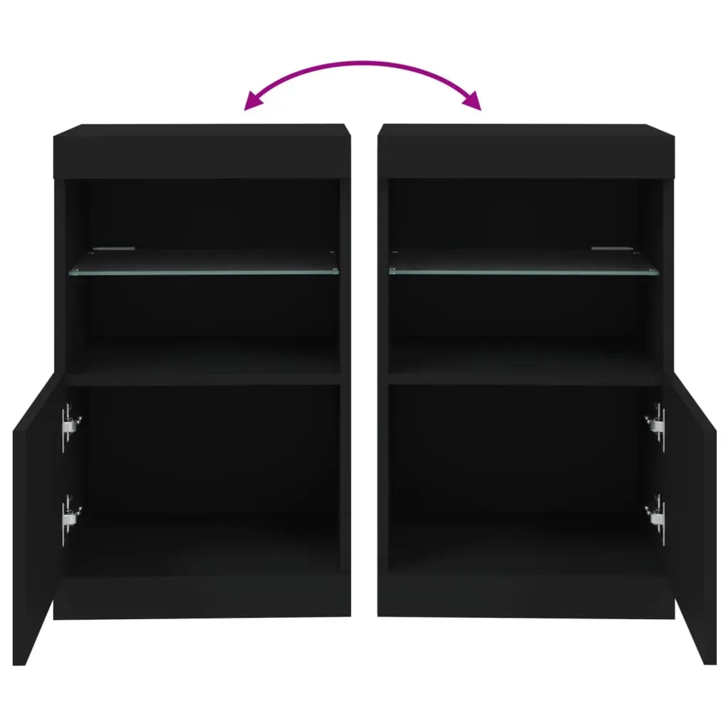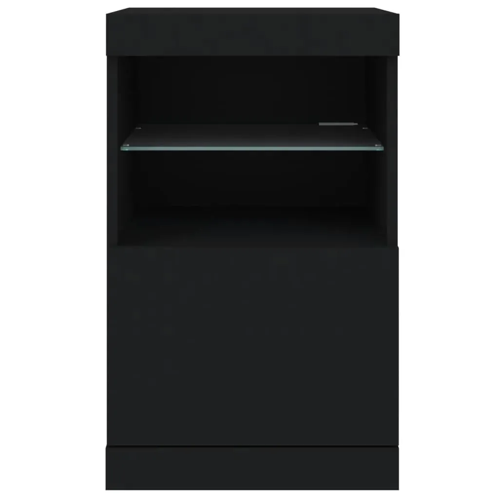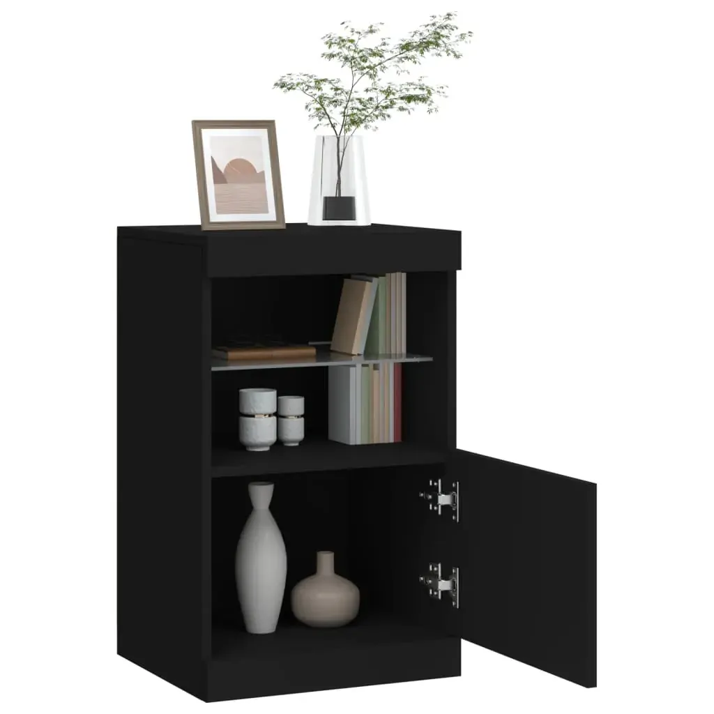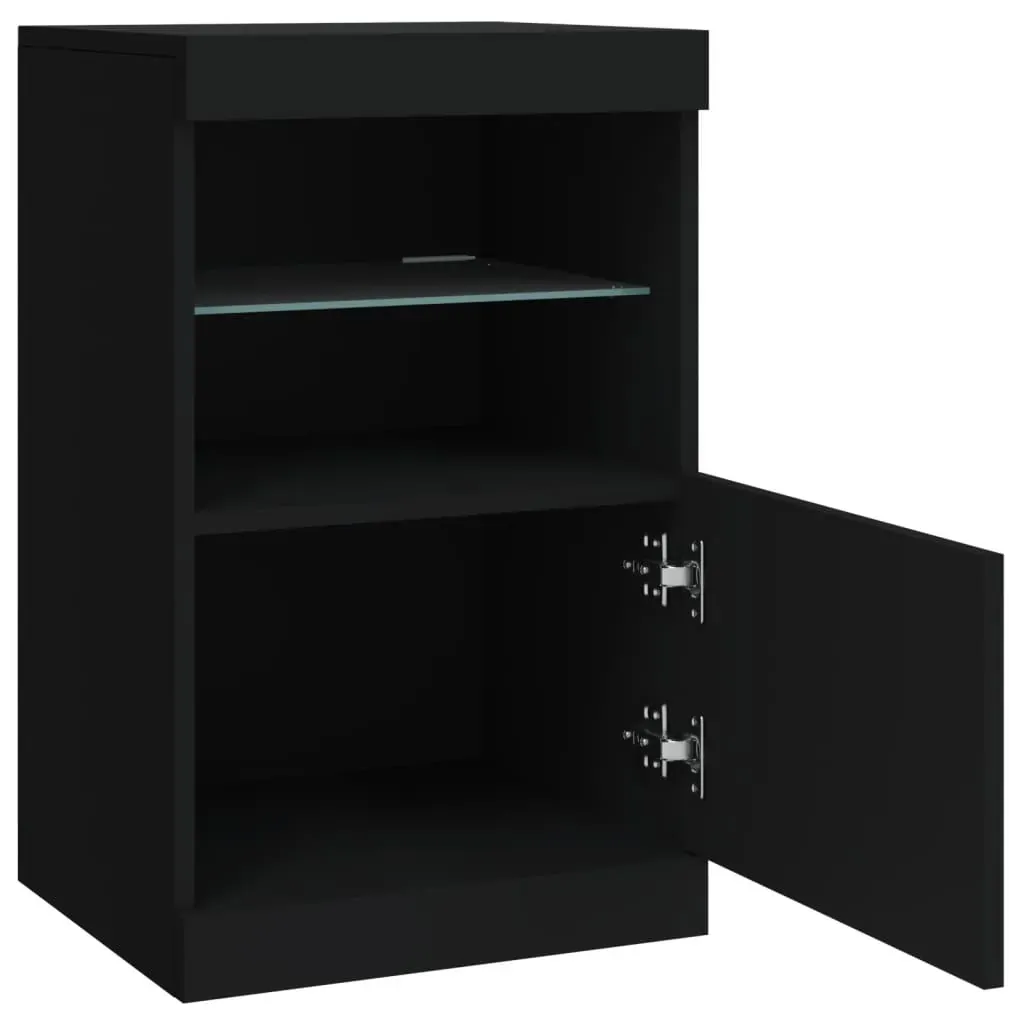 Decorate your room with this modern sideboard with LED lights, it easily blends with furniture in any style at your house. Durable material: The engineered wood is of exceptional quality with a smooth surface and features strength, stability and resistance to moisture.Ample storage space: The buffet provides plenty of storage space for keeping your magazines, books, remote controls and other small items well-organised and within easy reach.Displaying function: The sturdy top of sideboard cabinet is ideal for displaying decorative objects, photo frames, or potted plants.RGB LED lights: The storage cabinet is equipped with vibrant RGB LED lights. With various customisable menus, you can effortlessly change the colour of the lights and even set them to adjust automatically. Warning:To prevent it being overturned, this product must be used with the provided wall attachment device. Good to know:The product has a USB connector that requires a certified 5V USB power source (not included).