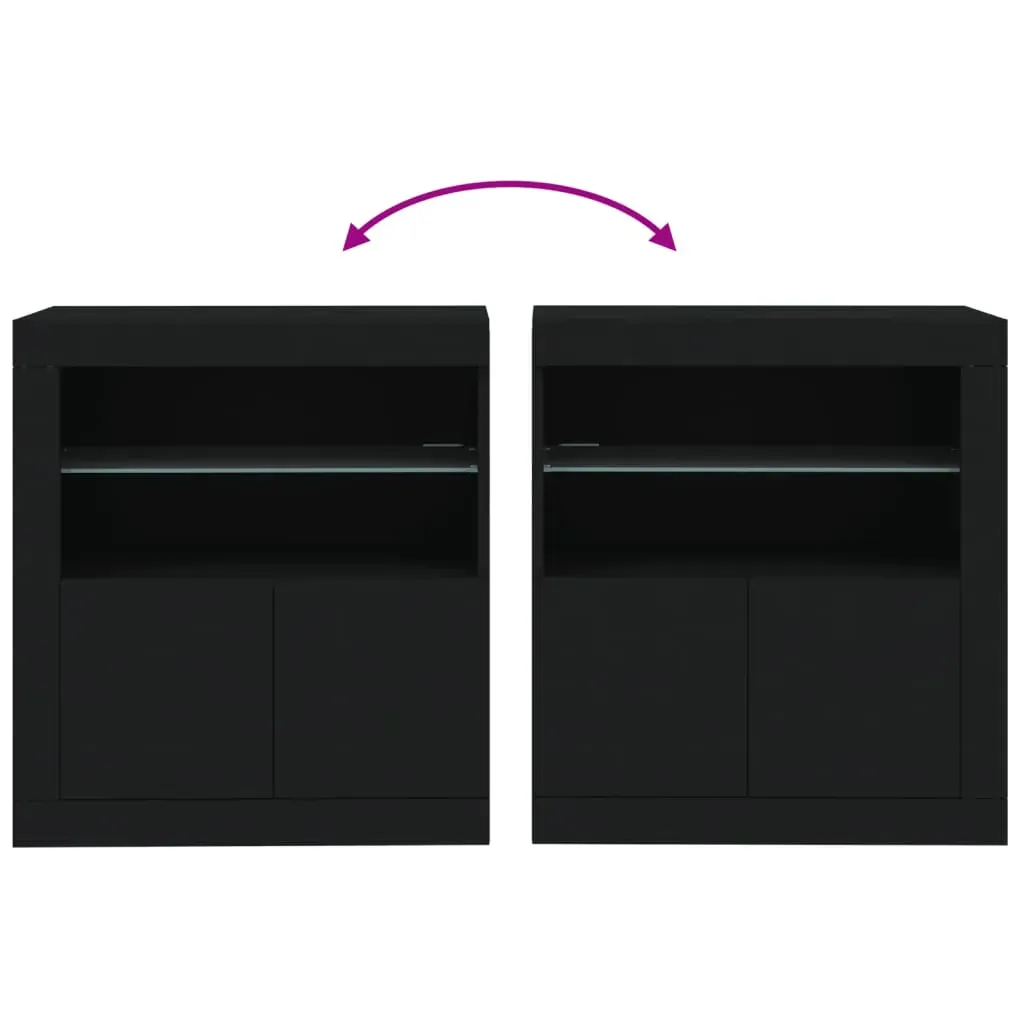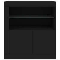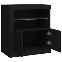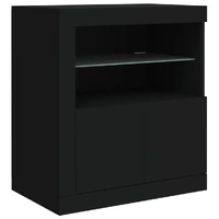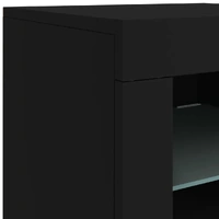 Decorate your room with this modern sideboard with LED lights, it easily blends with furniture in any style at your house. Durable material: The engineered wood is of exceptional quality with a smooth surface and features strength, stability and resistance to moisture.Ample storage space: The buffet provides plenty of storage space for keeping your magazines, books, remote controls and other small items well-organised and within easy reach.Displaying function: The sturdy top of sideboard cabinet is ideal for displaying decorative objects, photo frames, or potted plants.RGB LED lights: The storage cabinet is equipped with vibrant RGB LED lights. With various customisable menus, you can effortlessly change the colour of the lights and even set them to adjust automatically. Warning:To prevent it being overturned, this product must be used with the provided wall attachment device. Good to know:The product has a USB connector that requires a certified 5V USB power source (not included).