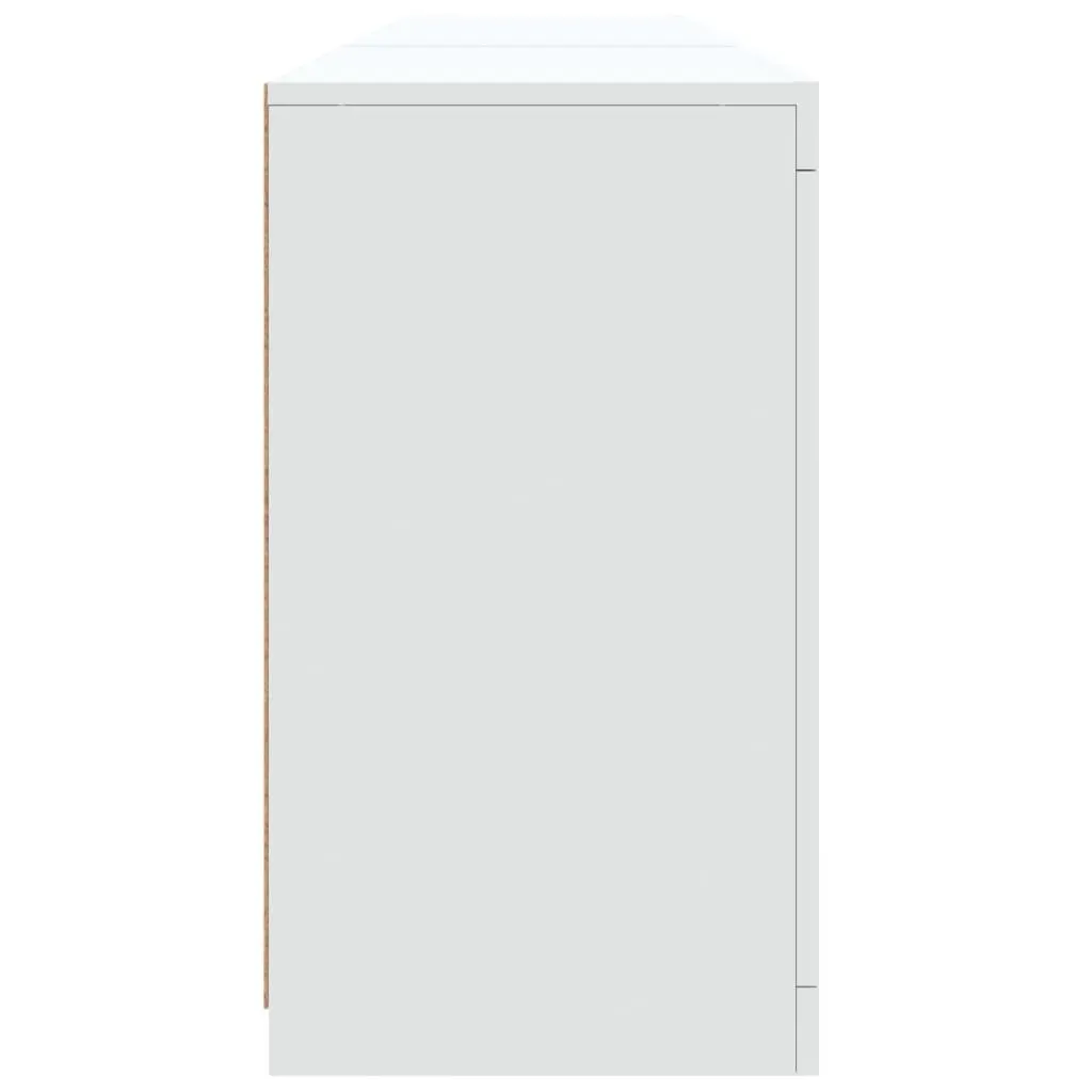 Decorate your room with this modern sideboard with LED lights, it easily blends with furniture in any style at your house. Durable material: The engineered wood is of exceptional quality with smooth surface and also features strength, stability and resistance to moisture.RGB LED lights: The buffet is equipped with vibrant RGB LED lights. With various customisable menus, you can effortlessly change the colour of the lights and even set them to adjust automatically. These LED lights not only enhance the contemporary look of the sideboard cabinet but also add to its trendy appeal.Ample storage space: The storage cabinet offers plenty of space to keep your everyday items neatly arranged and easily accessible.Displaying function: The sturdy top of the hallway cabinet is ideal for displaying decorative objects, photo frames, or potted plants.Practical doors: Keep your essentials free from dust by hiding them behind the doors of the side cabinet. Good to know:The product has a USB connector that requires a certified 5V USB power source (not included). Warning:To prevent it being overturned, this product must be used with the provided wall attachment device.