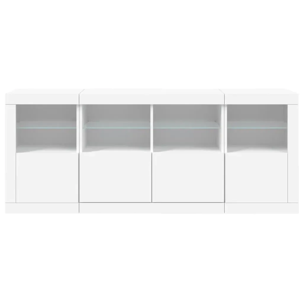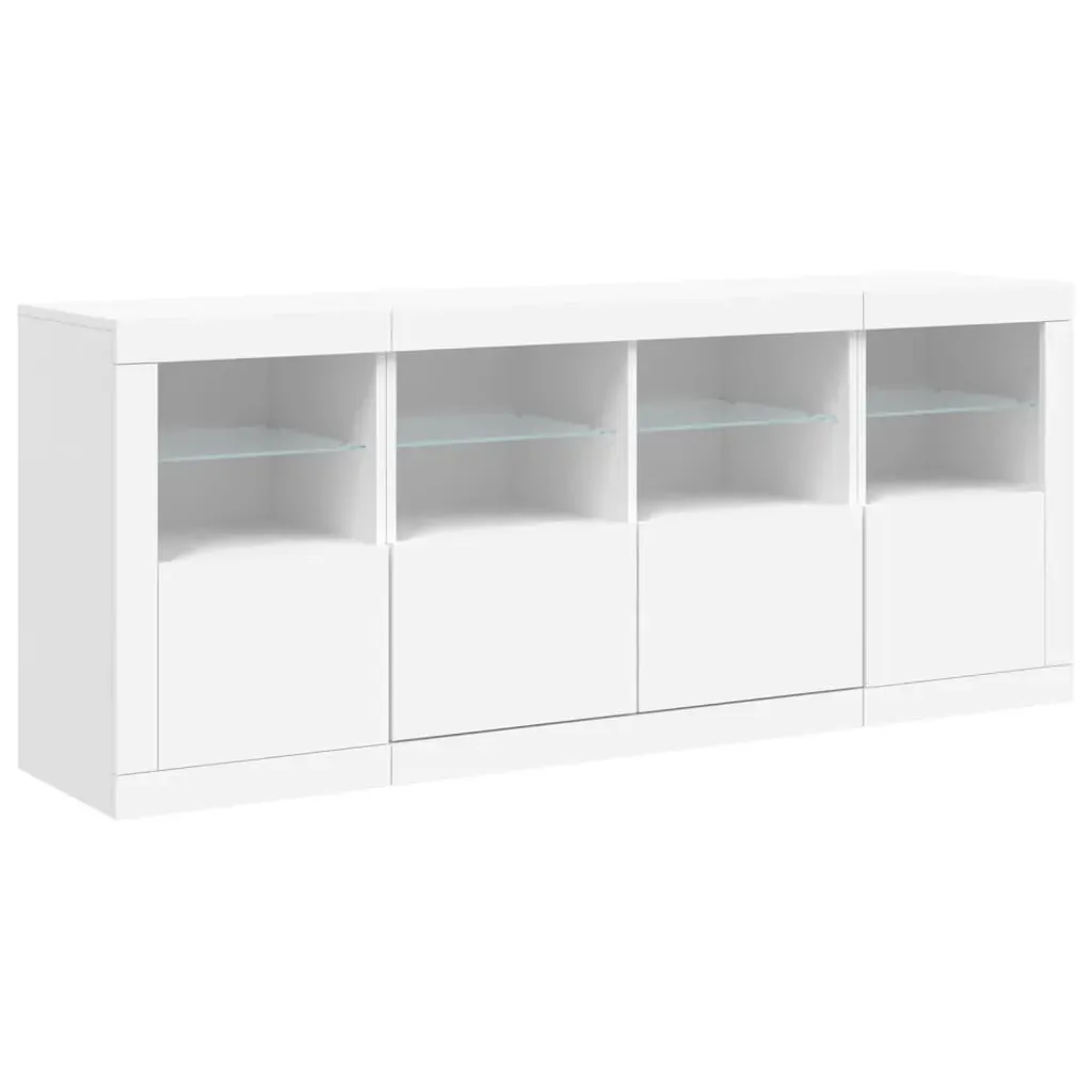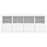 Decorate your room with this modern sideboard with LED lights, it easily blends with furniture in any style at your house. Durable material: The engineered wood is of exceptional quality with smooth surface and also features strength, stability and resistance to moisture.RGB LED lights: The buffet is equipped with vibrant RGB LED lights. With various customisable menus, you can effortlessly change the colour of the lights and even set them to adjust automatically. These LED lights not only enhance the contemporary look of the sideboard cabinet but also add to its trendy appeal.Ample storage space: The storage cabinet offers plenty of space to keep your everyday items neatly arranged and easily accessible.Displaying function: The sturdy top of the hallway cabinet is ideal for displaying decorative objects, photo frames, or potted plants.Practical doors: Keep your essentials free from dust by hiding them behind the doors of the side cabinet. Good to know:The product has a USB connector that requires a certified 5V USB power source (not included). Warning:To prevent it being overturned, this product must be used with the provided wall attachment device.
