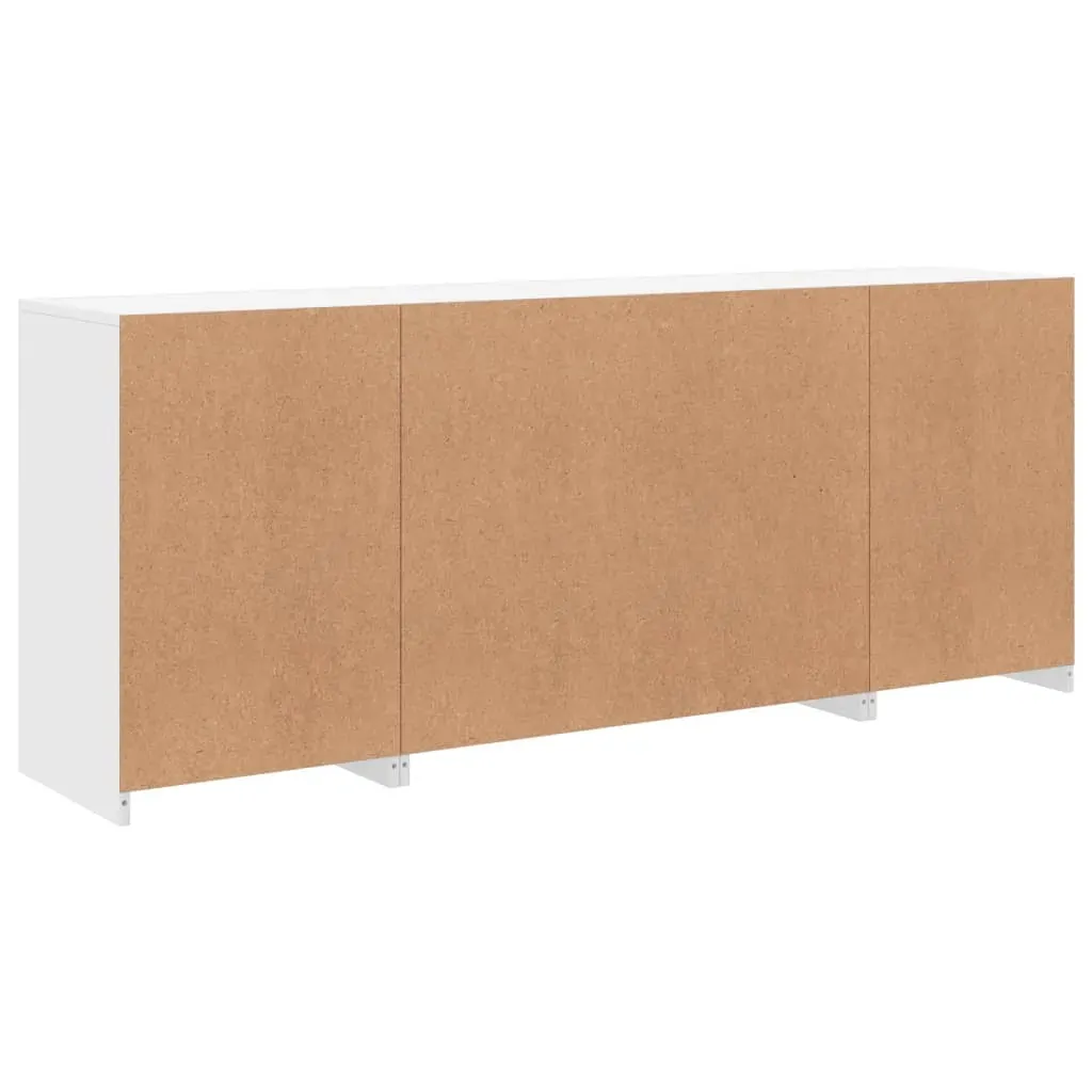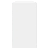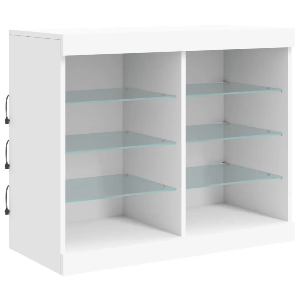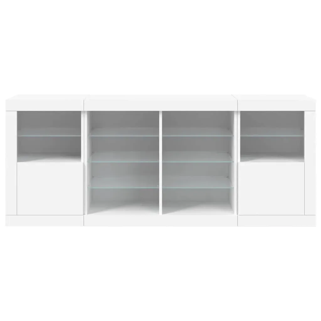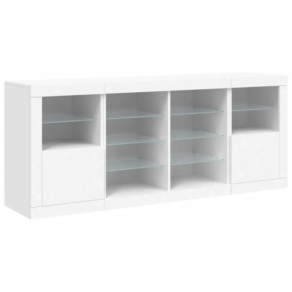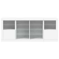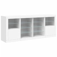 Decorate your room with this modern sideboard with LED lights, it easily blends with furniture in any style at your house. Durable material: The engineered wood is of exceptional quality with smooth surface and also features strength, stability and resistance to moisture.RGB LED lights: The buffet is equipped with vibrant RGB LED lights. With various customisable menus, you can effortlessly change the colour of the lights and even set them to adjust automatically. These LED lights not only enhance the contemporary look of the sideboard cabinet but also add to its trendy appeal.Ample storage space: The storage cabinet offers plenty of space to keep your everyday items neatly arranged and easily accessible.Displaying function: The sturdy top of the hallway cabinet is ideal for displaying decorative objects, photo frames, or potted plants.Practical doors: Keep your essentials free from dust by hiding them behind the doors of the side cabinet. Good to know:The product has a USB connector that requires a certified 5V USB power source (not included). Warning:To prevent it being overturned, this product must be used with the provided wall attachment device.