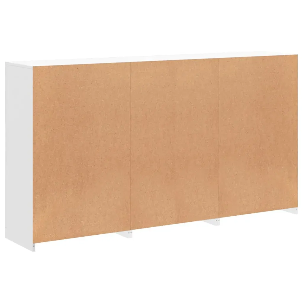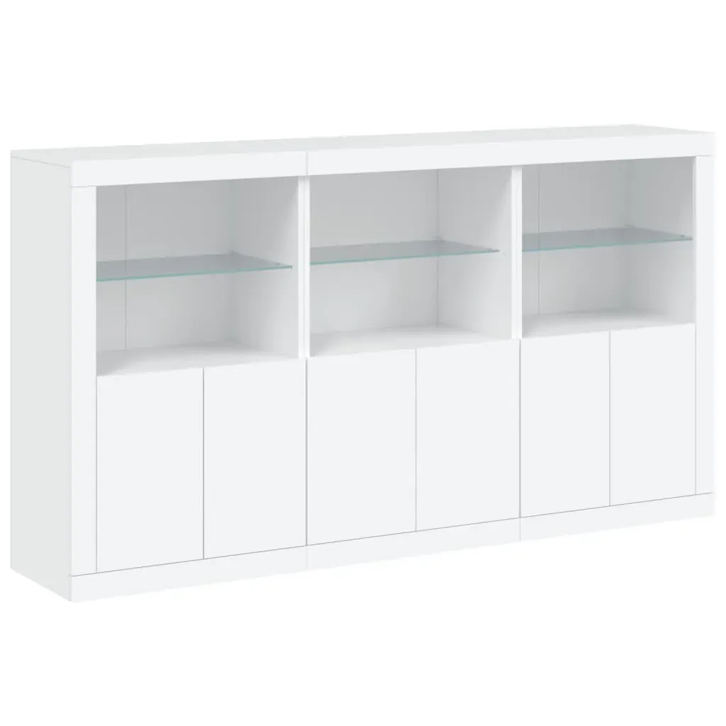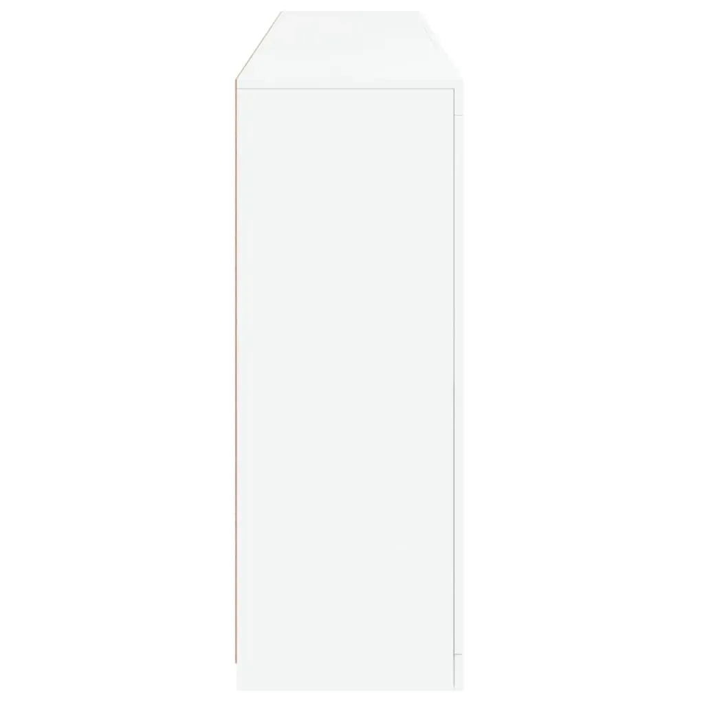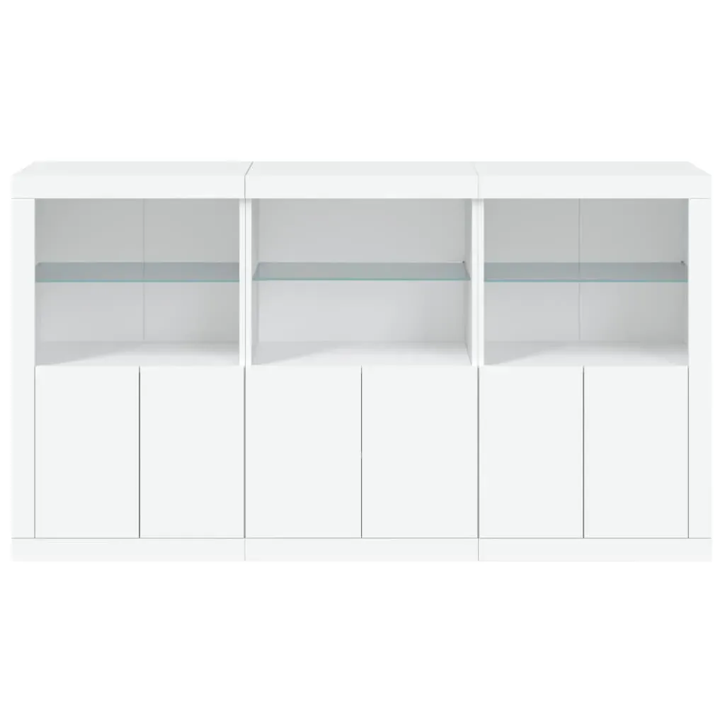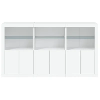 Decorate your room with this modern sideboard with LED lights, it easily blends with furniture in any style at your house. Durable material: The engineered wood is of exceptional quality with smooth surface and also features strength, stability and resistance to moisture.RGB LED lights: The buffet is equipped with vibrant RGB LED lights. With various customisable menus, you can effortlessly change the colour of the lights and even set them to adjust automatically. These LED lights not only enhance the contemporary look of the sideboard cabinet but also add to its trendy appeal.Ample storage space: The storage cabinet offers plenty of space to keep your everyday items neatly arranged and easily accessible.Displaying function: The sturdy top of the hallway cabinet is ideal for displaying decorative objects, photo frames, or potted plants.Practical doors: Keep your essentials free from dust by hiding them behind the doors of the side cabinet. Good to know:The product has a USB connector that requires a certified 5V USB power source (not included). Warning:To prevent it being overturned, this product must be used with the provided wall attachment device.
