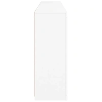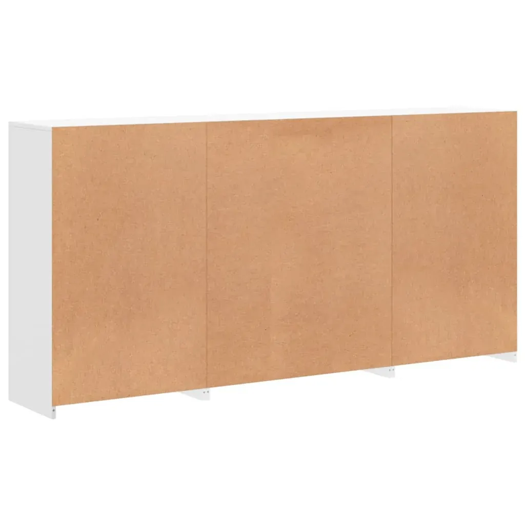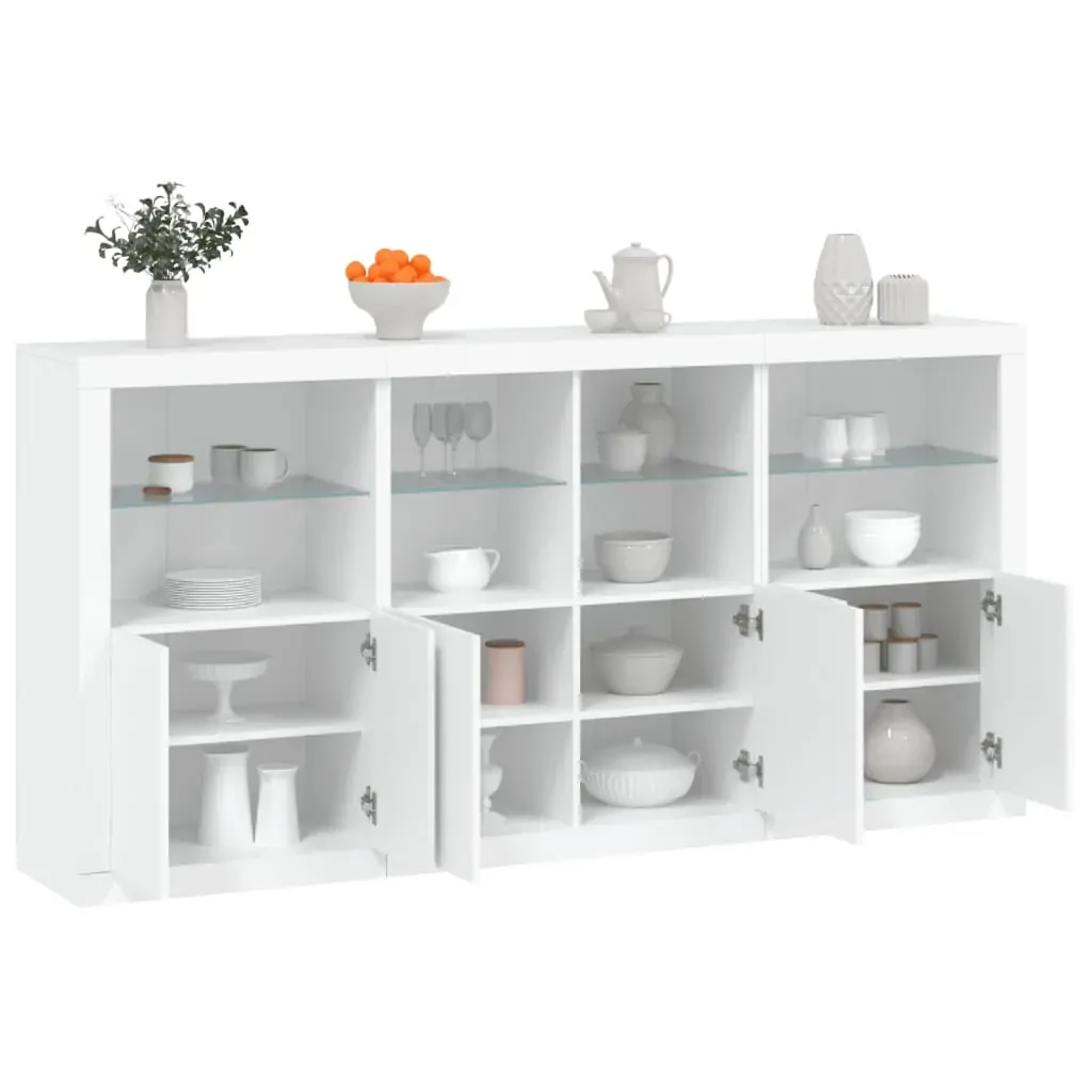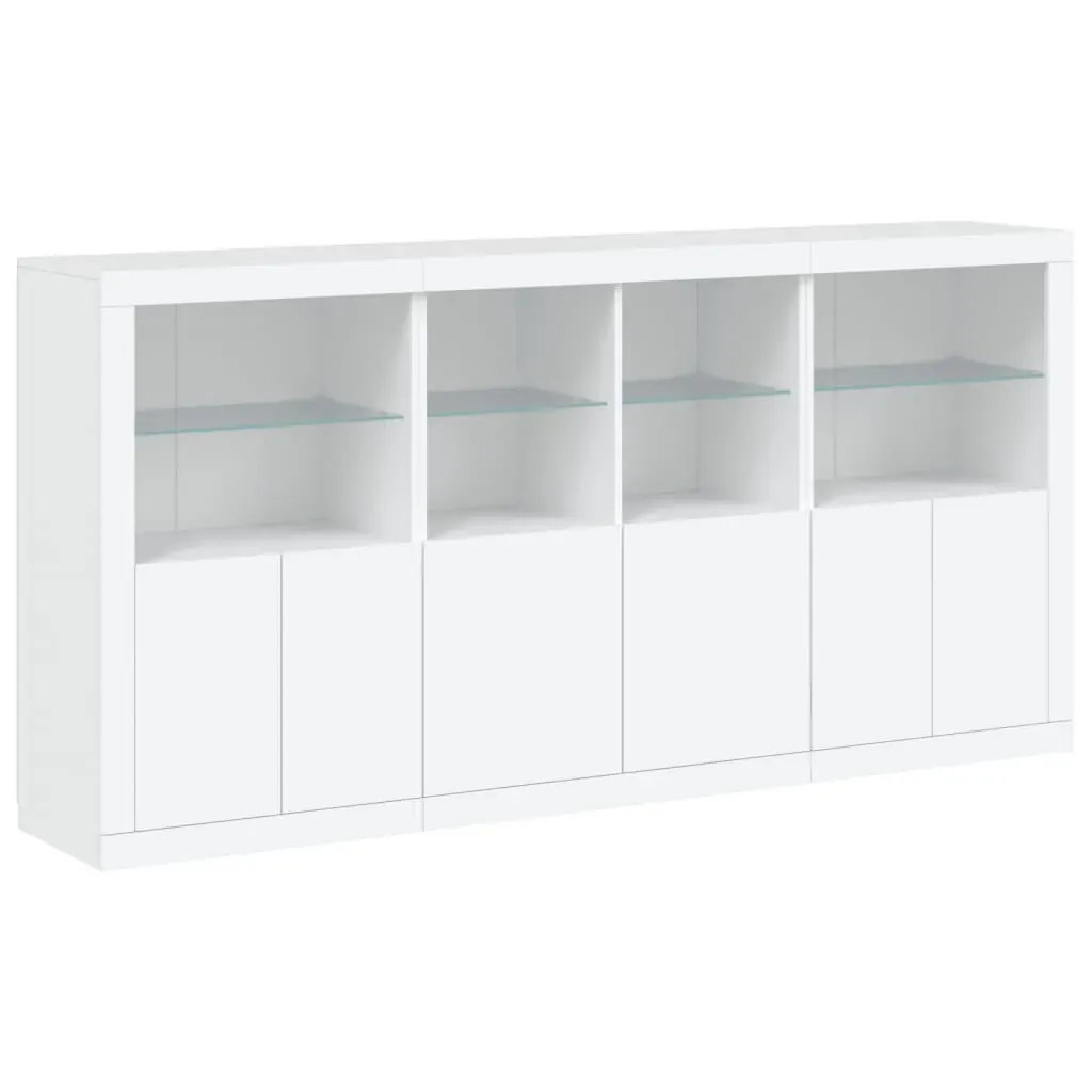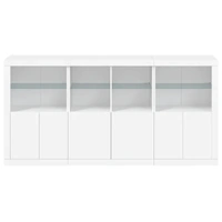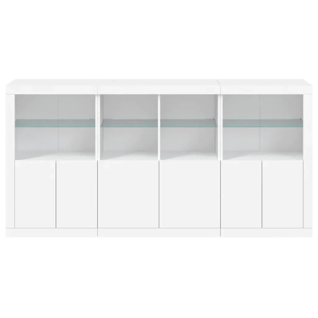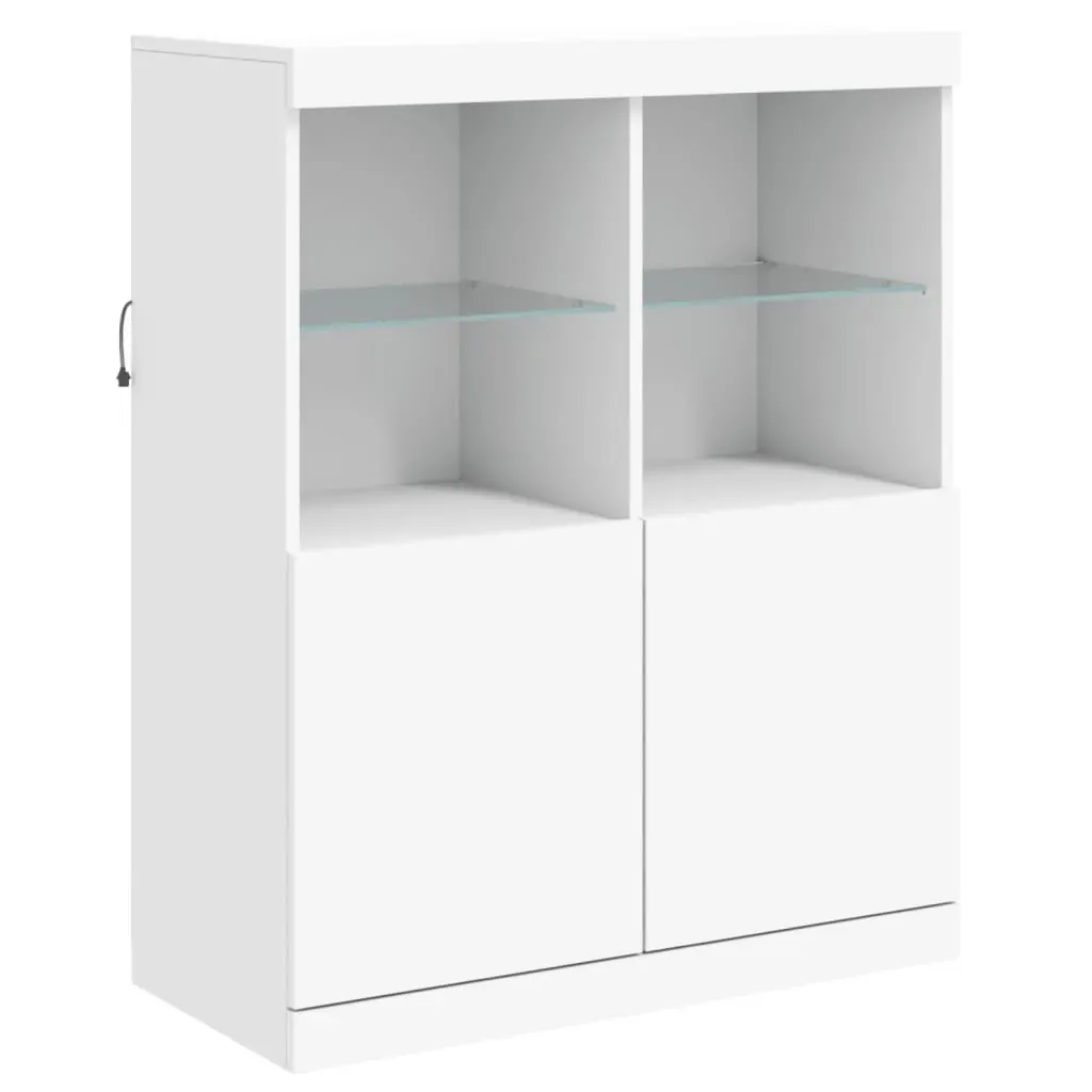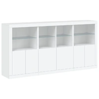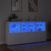 Decorate your room with this modern sideboard with LED lights, it easily blends with furniture in any style at your house. Durable material: The engineered wood is of exceptional quality with smooth surface and also features strength, stability and resistance to moisture.RGB LED lights: The buffet is equipped with vibrant RGB LED lights. With various customisable menus, you can effortlessly change the colour of the lights and even set them to adjust automatically. These LED lights not only enhance the contemporary look of the sideboard cabinet but also add to its trendy appeal.Ample storage space: The storage cabinet offers plenty of space to keep your everyday items neatly arranged and easily accessible.Displaying function: The sturdy top of the hallway cabinet is ideal for displaying decorative objects, photo frames, or potted plants.Practical doors: Keep your essentials free from dust by hiding them behind the doors of the side cabinet. Good to know:The product has a USB connector that requires a certified 5V USB power source (not included). Warning:To prevent it being overturned, this product must be used with the provided wall attachment device.