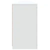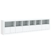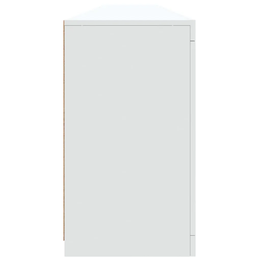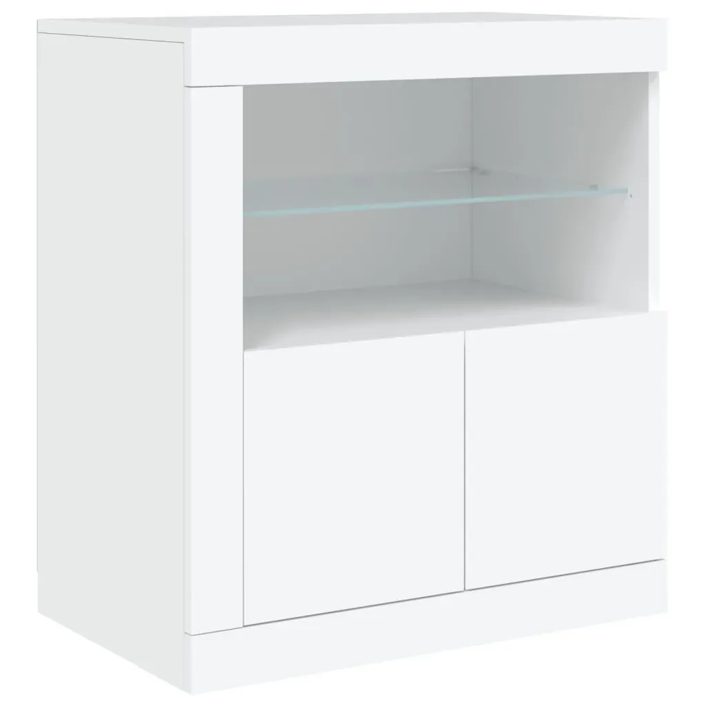 Decorate your room with this modern sideboard with LED lights, it easily blends with furniture in any style at your house. Durable material: The engineered wood is of exceptional quality with smooth surface and also features strength, stability and resistance to moisture.RGB LED lights: The buffet is equipped with vibrant RGB LED lights. With various customisable menus, you can effortlessly change the colour of the lights and even set them to adjust automatically. These LED lights not only enhance the contemporary look of the sideboard cabinet but also add to its trendy appeal.Ample storage space: The storage cabinet offers plenty of space to keep your everyday items neatly arranged and easily accessible.Displaying function: The sturdy top of the hallway cabinet is ideal for displaying decorative objects, photo frames, or potted plants.Practical doors: Keep your essentials free from dust by hiding them behind the doors of the side cabinet. Good to know:The product has a USB connector that requires a certified 5V USB power source (not included). Warning:To prevent it being overturned, this product must be used with the provided wall attachment device.